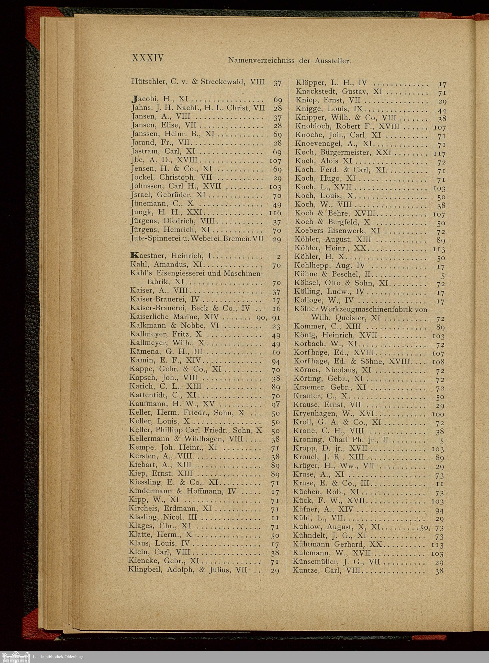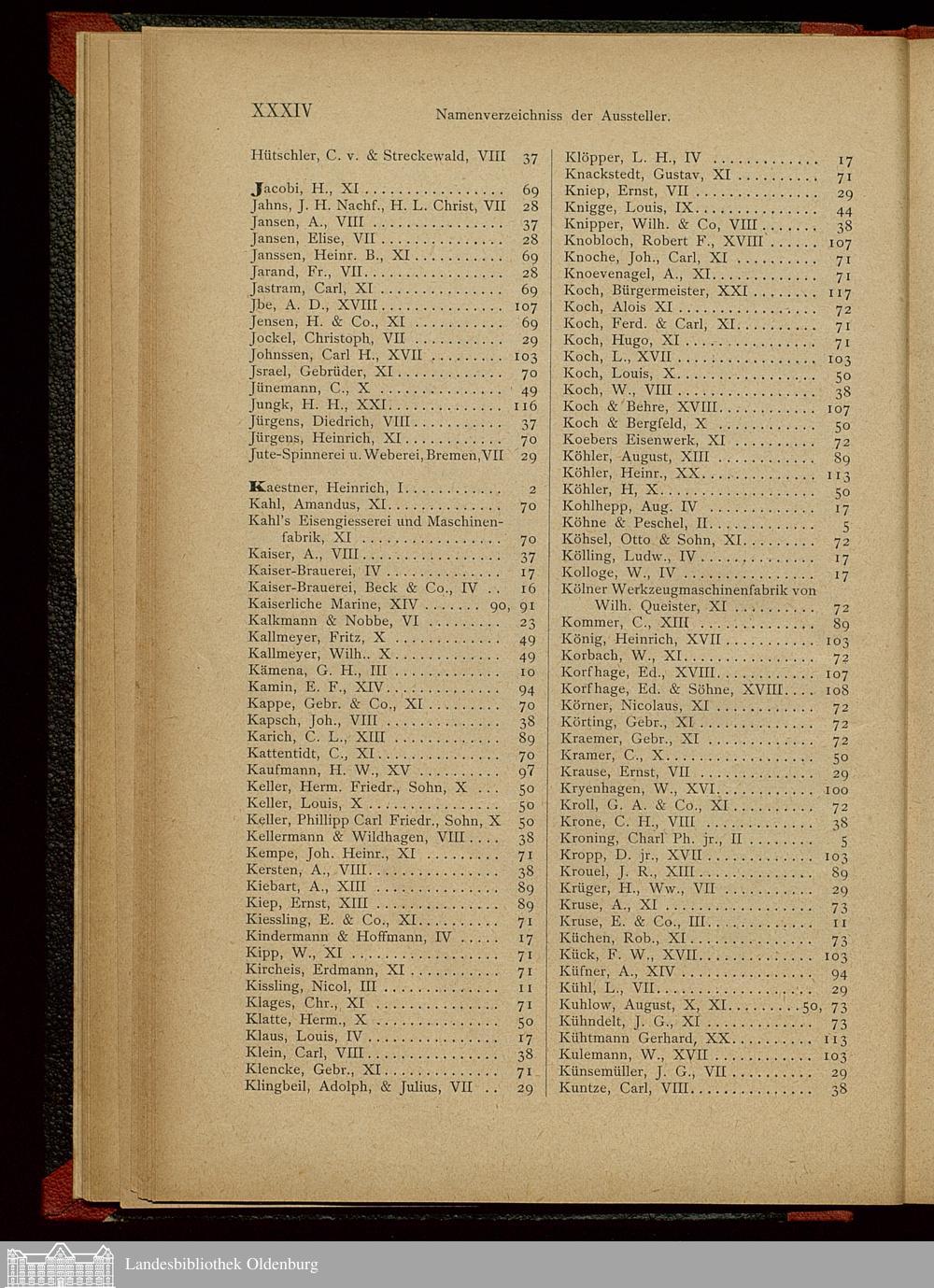 Namen-Verzeichniss der Aussteller.