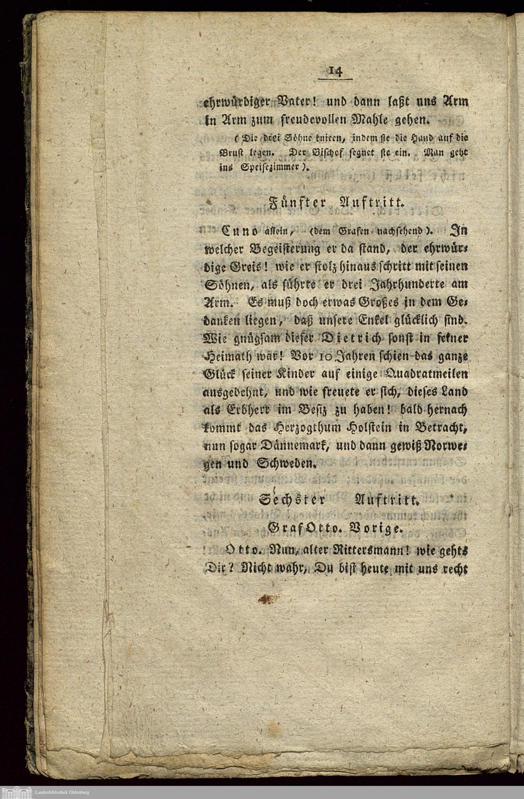 Das Königliche Stammhaus Oldenburg oder: Die Wahl Christians des Ersten : Historisch-romantisches Schauspiel mit Gesang, in zwei Aufzügen ; Zur hohen Geburtstagsfeier Sr. Majestät des Königs Christian des Siebenten und Sr. Königlichen Hoheit des Kronprinzen Friedrichs von Dännemark aufgeführt auf dem Nationaltheater zu Altona am 28sten Januar, und wiederholt am 31sten Januar, 9ten Febr. und 12ten März 1801 / von Evers. Die Musik vom Musikdirektor Hiller