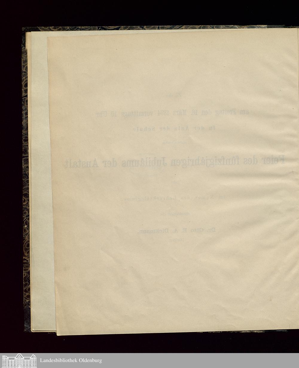 Aktenmässige Beiträge zur Vorgeschichte der Städtischen Ober-Realschule und Vorschule zu Oldenburg : [Festschrift] zur Feier ihres fünfzigjährigen Jubiläums / von Otto E. A. Dickmann