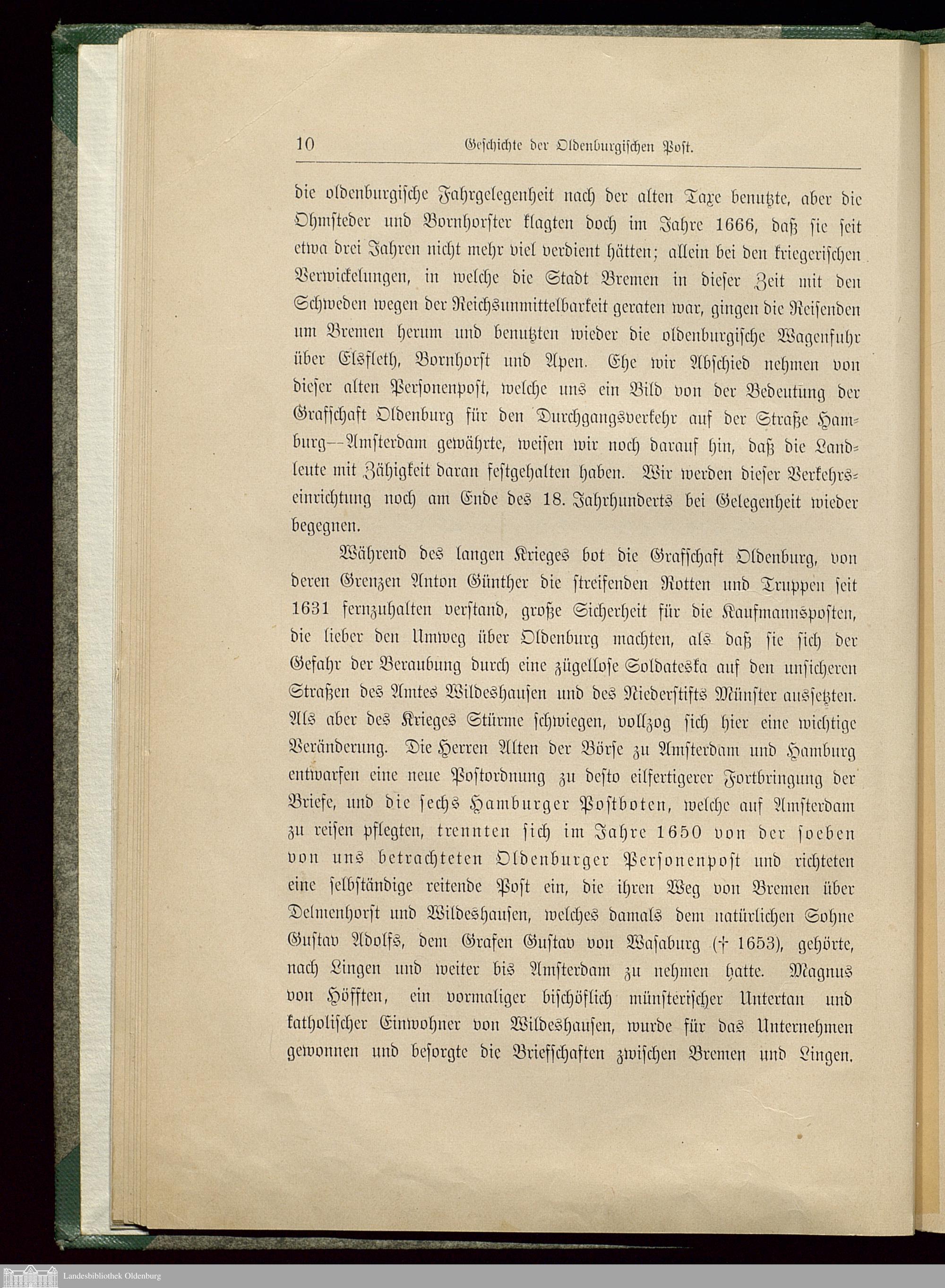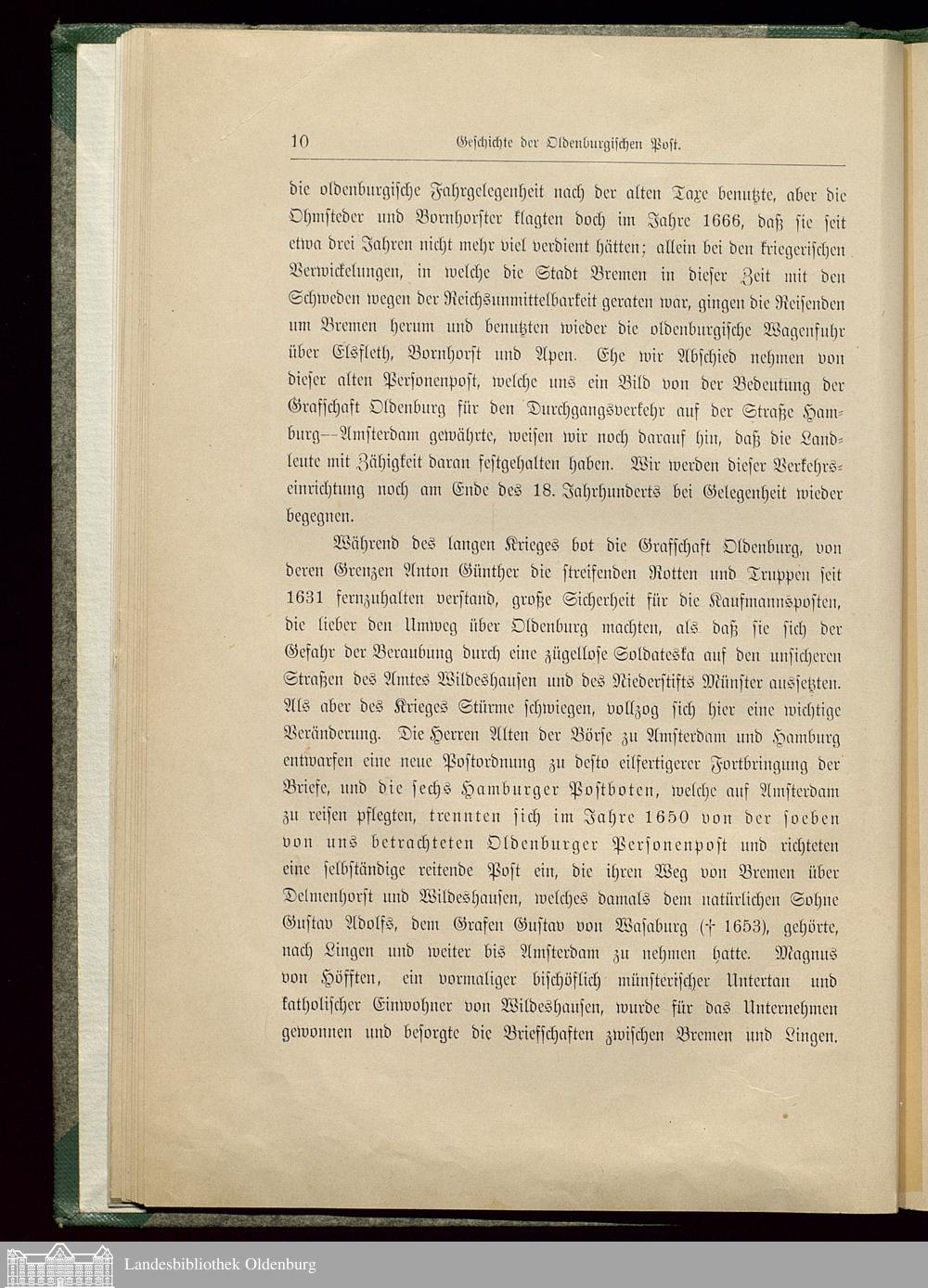 [Das oldenburgische Postwesen bis zum Tode Graf Anton Günthers 1667.]