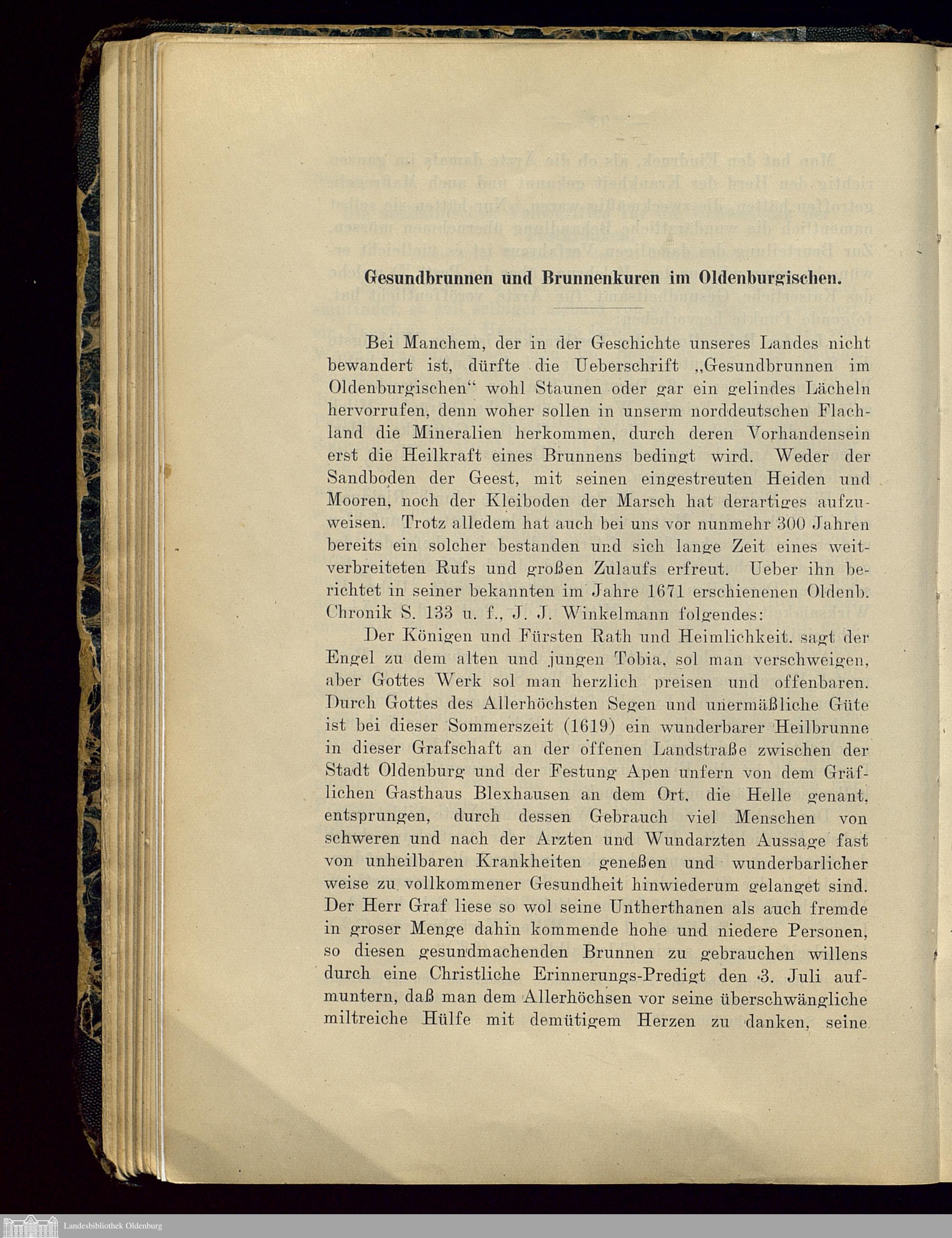 Gesundbrunnen und Brunnenkuren im Oldenburgischen.