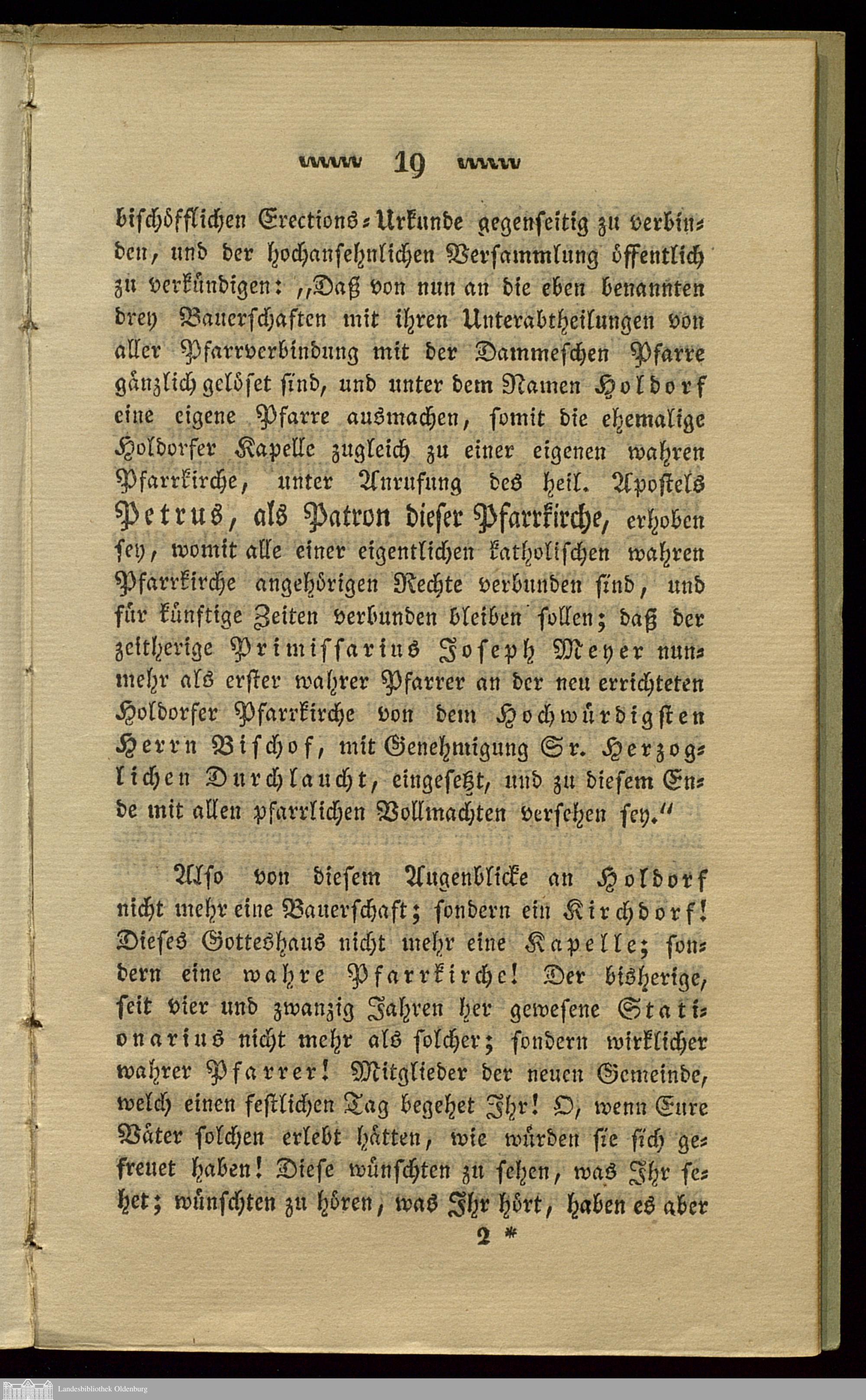 Reden bey der Feyer der Erhebung der bisherigen Kapelle zu Holdorf zur wirklichen Pfarrkirche, Introduction des ersten Pfarrers und gleichzeitiger Errichtung des neuen Kirchspiels, mit einigen historischen Bemerkungen über die frühern und spätern Verhältnisse des wegen seines Alters sowohl als seines weiten Umfanges berühmten Kirchspiels Damme, nebst Anhang : Vorgetragen am 20. Mai 1827 / von Arnold Joseph Gieseke