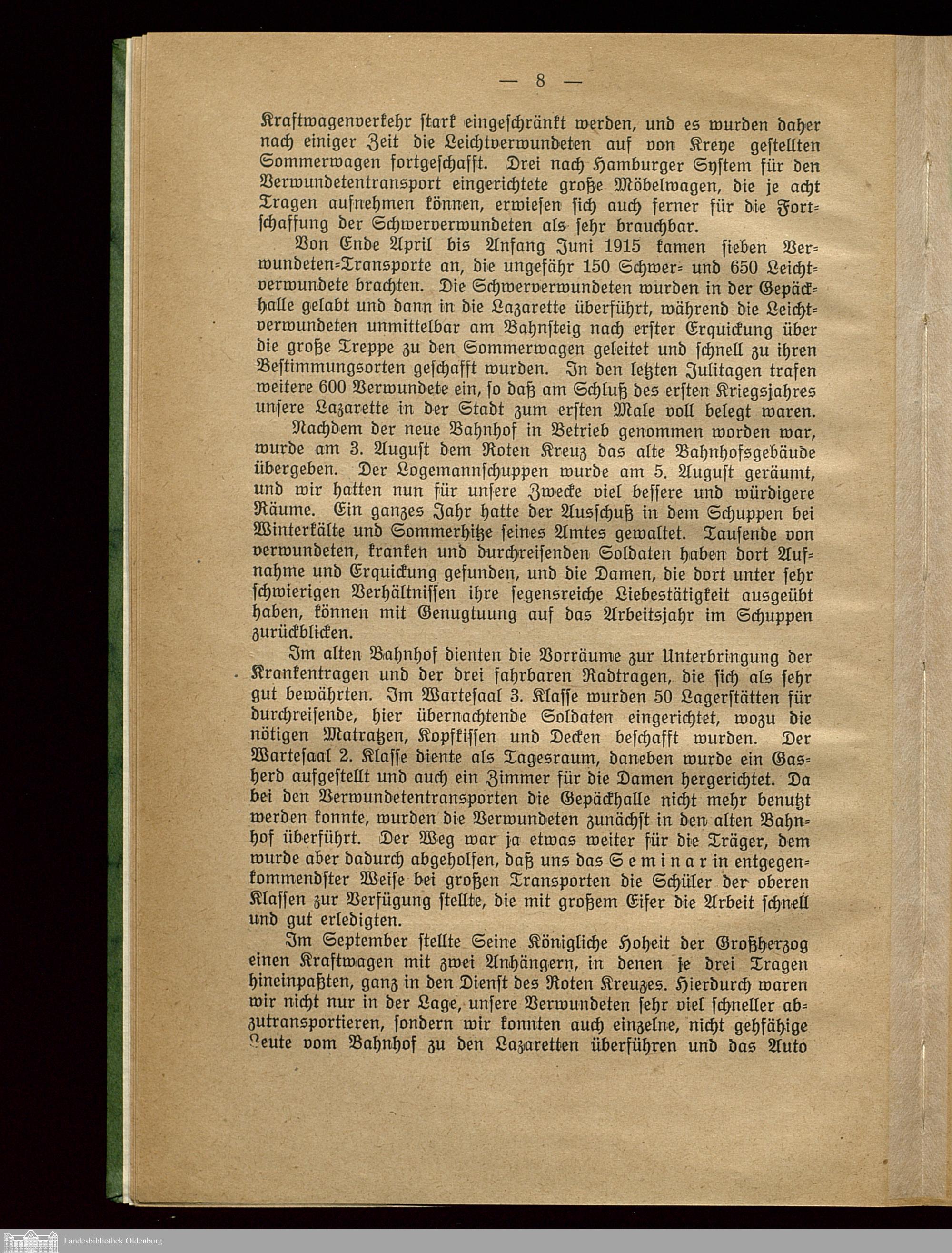 Die Kriegstätigkeit des Roten Kreuzes Oldenburg von 1914 - 1919