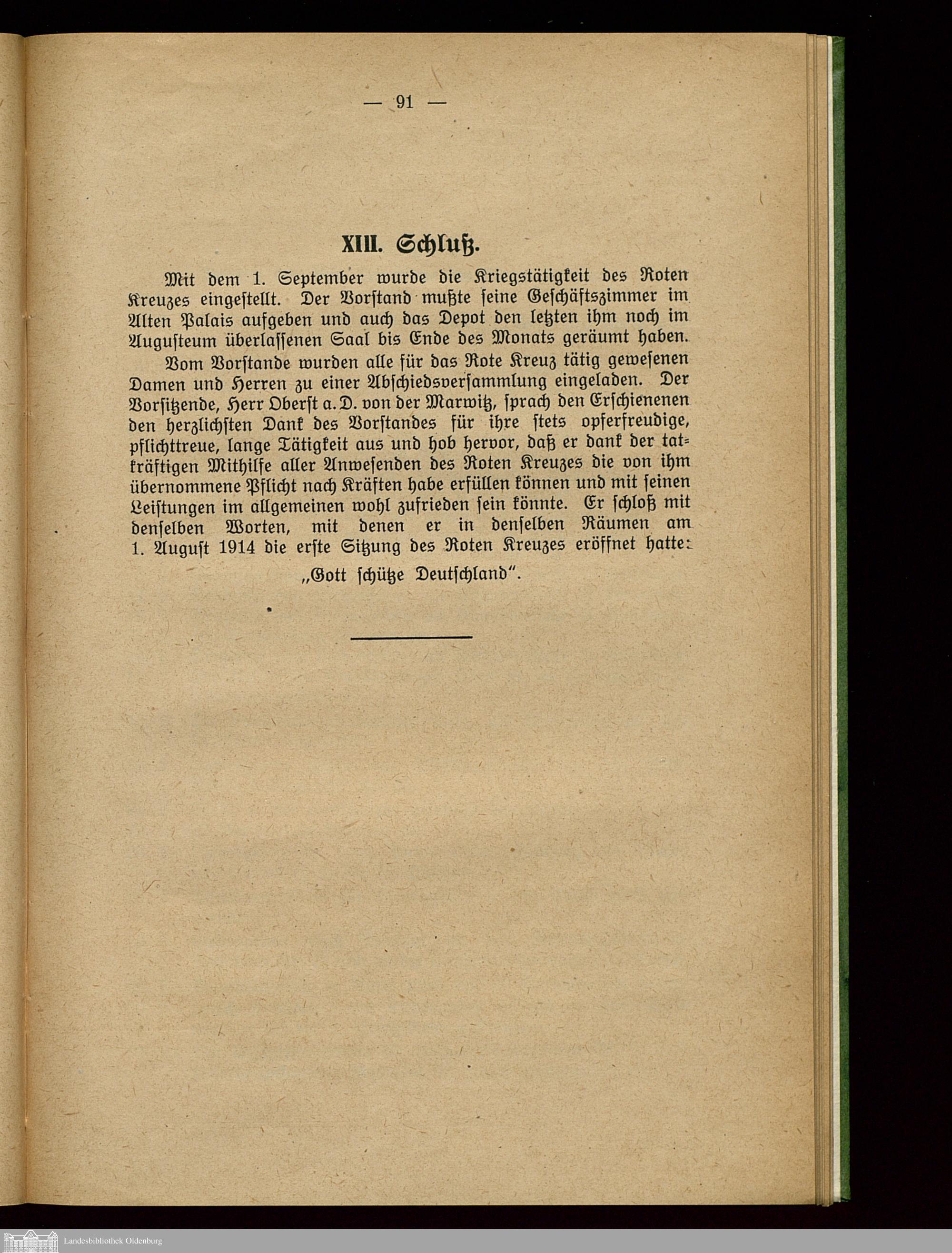 Die Kriegstätigkeit des Roten Kreuzes Oldenburg von 1914 - 1919
