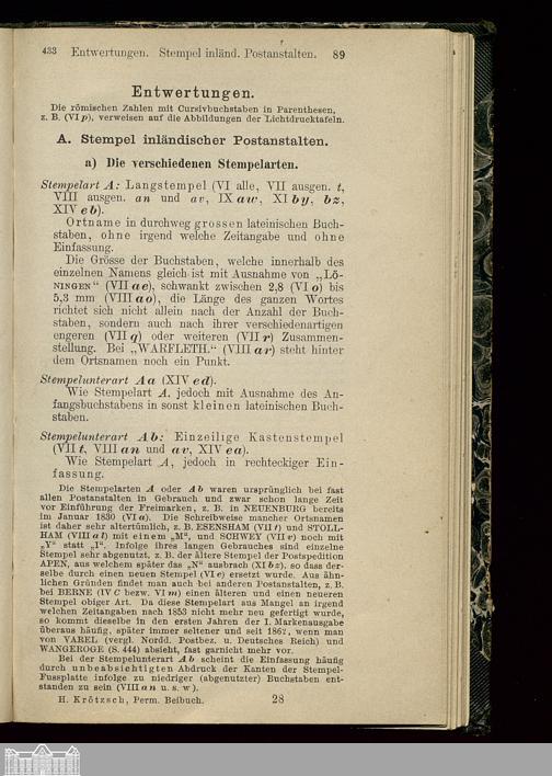 Permanentes Handbuch der Postfreimarkenkunde mit Lichtdrucktafeln (und vierteljährlichen...