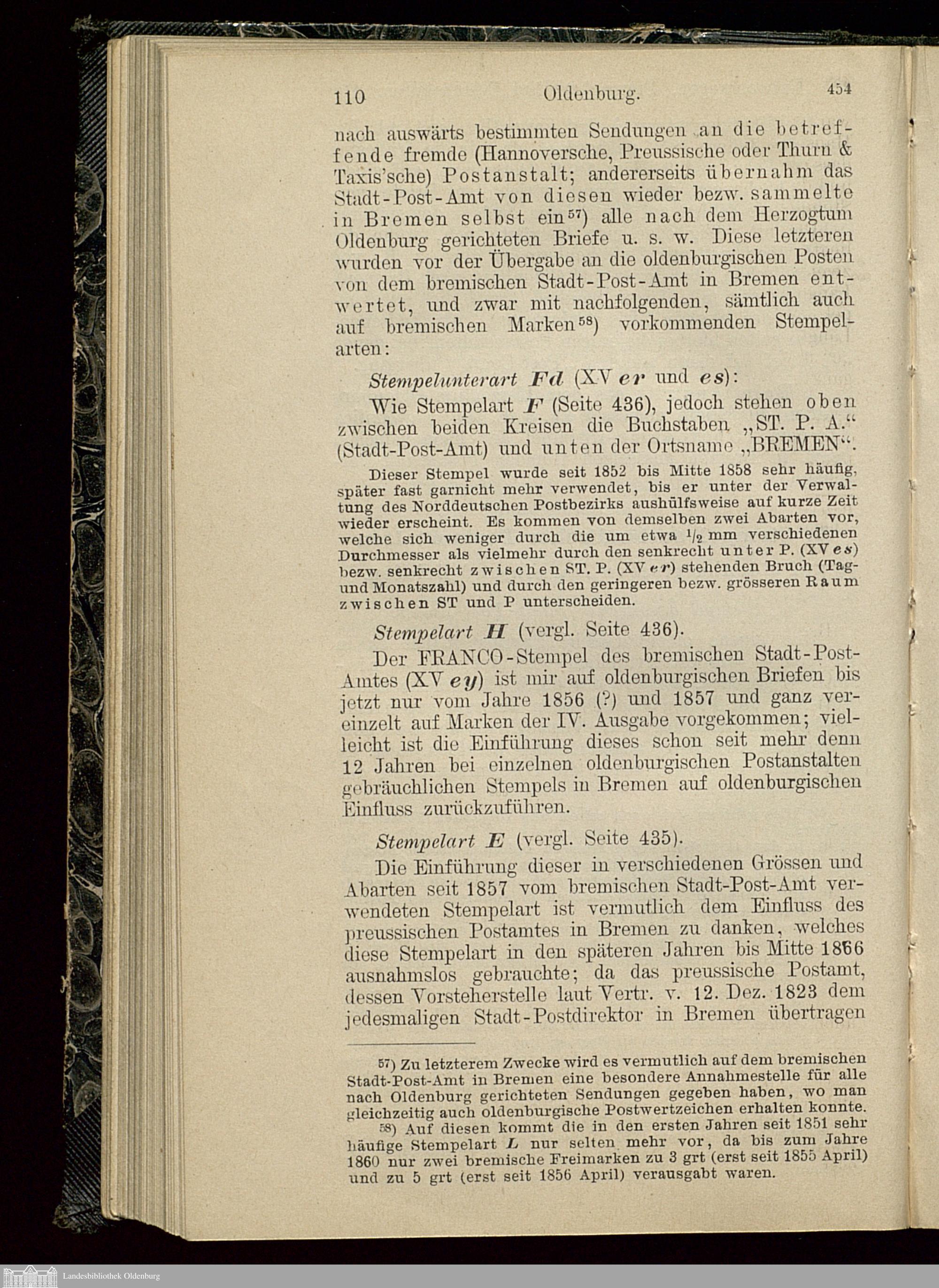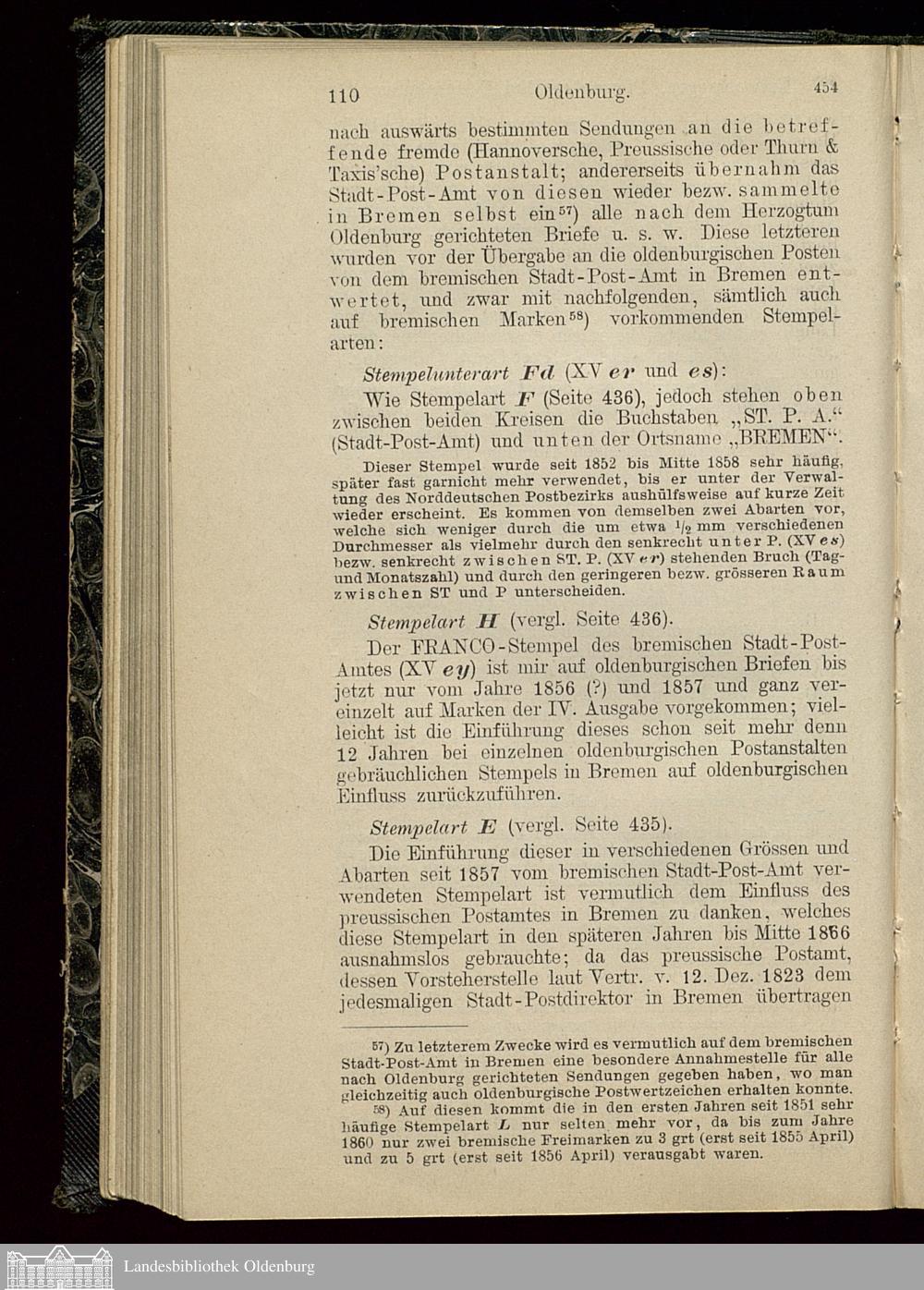B. Stempel ausländischer Postanstalten auf oldenburgischen Marken und Briefen.