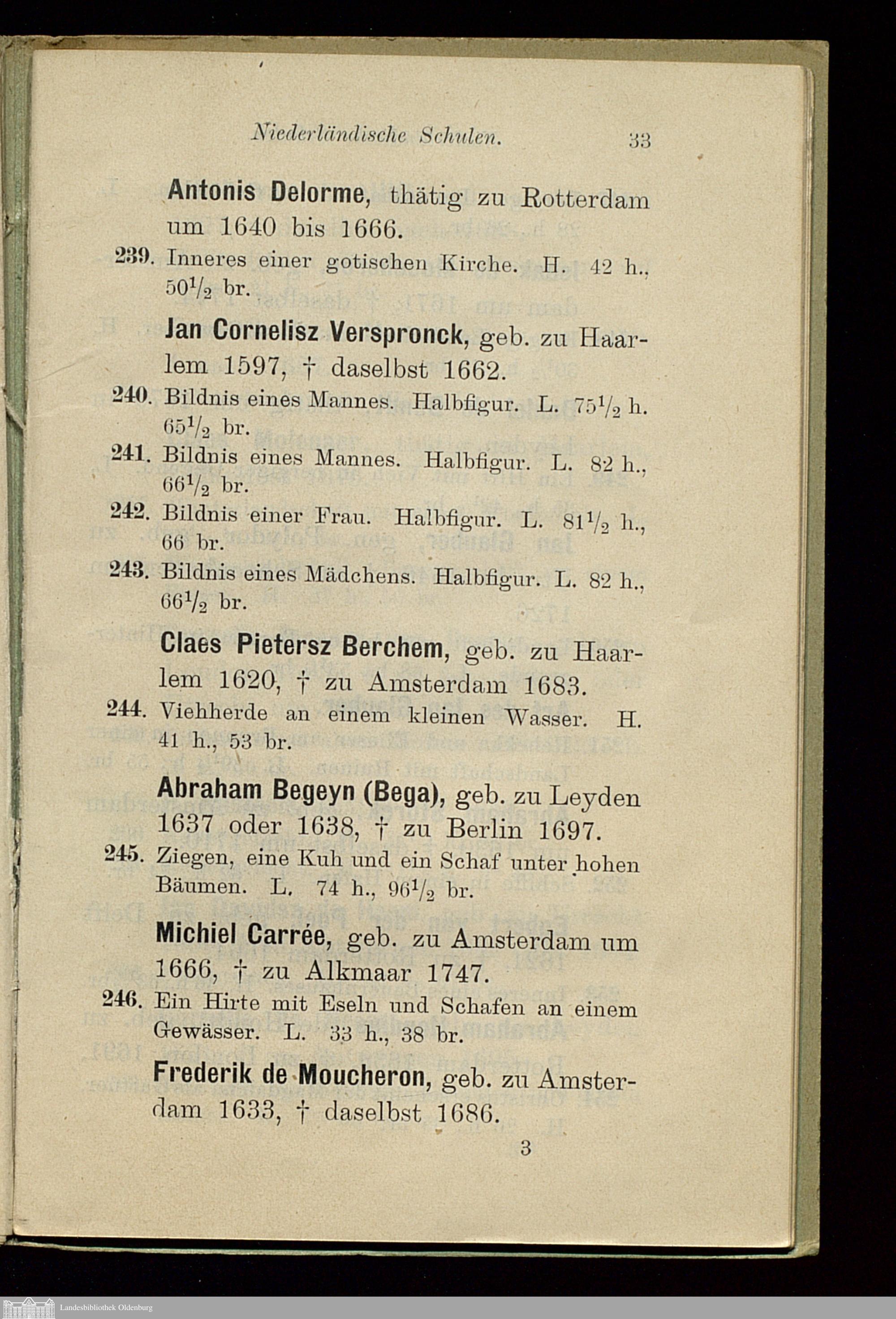 Kurzes Verzeichnis der Gemälde, Gips-Abgüsse und Bronze-Nachbildungen der Grossherzoglichen Sammlung im Augusteum zu Oldenburg