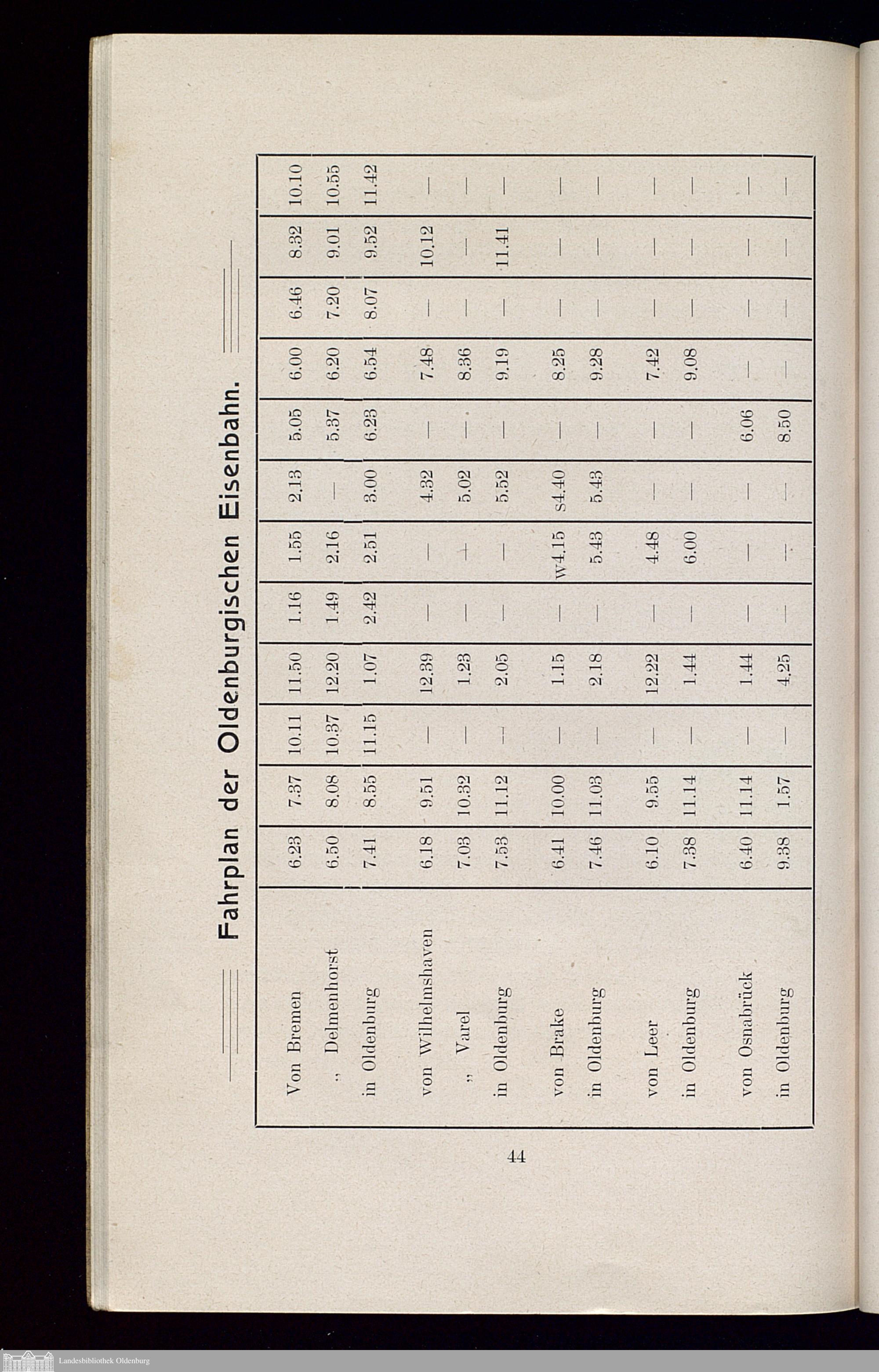 Fahrplan der Oldenburgischen Eisenbahn.