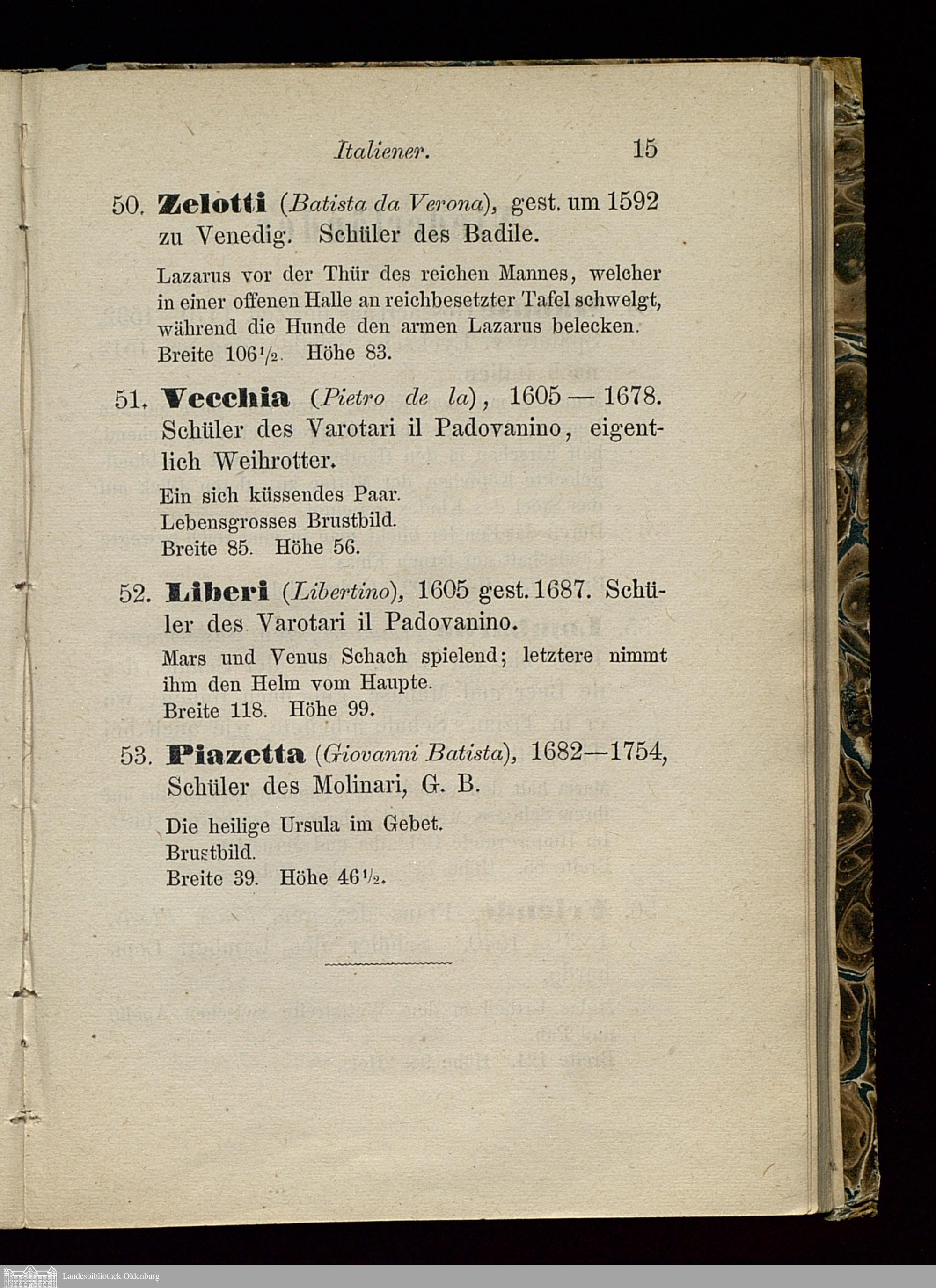 Verzeichniß der Gemälde und Gypsabgüsse in der Grossherzoglichen Sammlung zu Oldenburg : mit einem Anhange sämmtlicher auf den Gemälden befindlichen Monogramme, Bezeichnungen und Inschriften / nach den Bestimmungen von G. F. Waagen