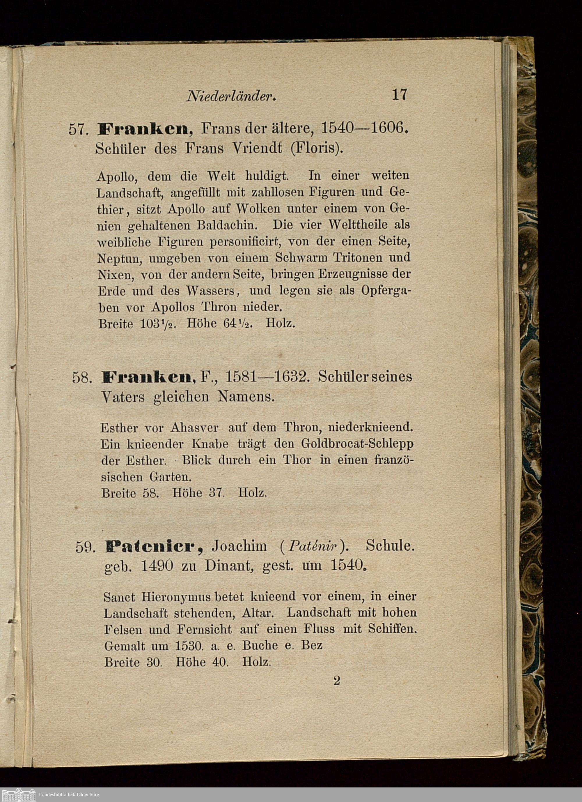 Verzeichniß der Gemälde und Gypsabgüsse in der Grossherzoglichen Sammlung zu Oldenburg : mit einem Anhange sämmtlicher auf den Gemälden befindlichen Monogramme, Bezeichnungen und Inschriften / nach den Bestimmungen von G. F. Waagen