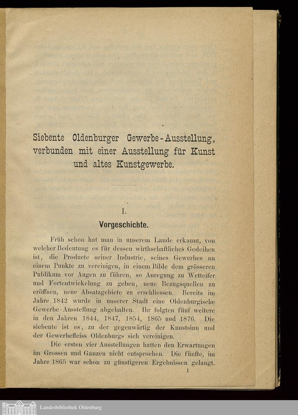 Katalog der Siebenten Oldenburger Gewerbe-Ausstellung : verbunden mit einer Ausstellung für Kunst und altes Kunstgewerbe für das Grossherzogthum Oldenburg unter dem Protectorate Sr. Königlichen Hoheit des Erbgrossherzogs vom 15. August bis 20. Septbr. 1885 in Oldenburg