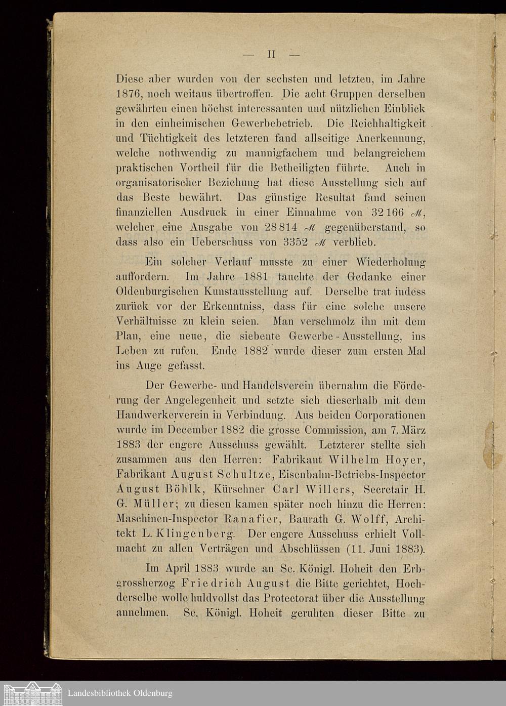 Katalog der Siebenten Oldenburger Gewerbe-Ausstellung : verbunden mit einer Ausstellung für Kunst und altes Kunstgewerbe für das Grossherzogthum Oldenburg unter dem Protectorate Sr. Königlichen Hoheit des Erbgrossherzogs vom 15. August bis 20. Septbr. 1885 in Oldenburg