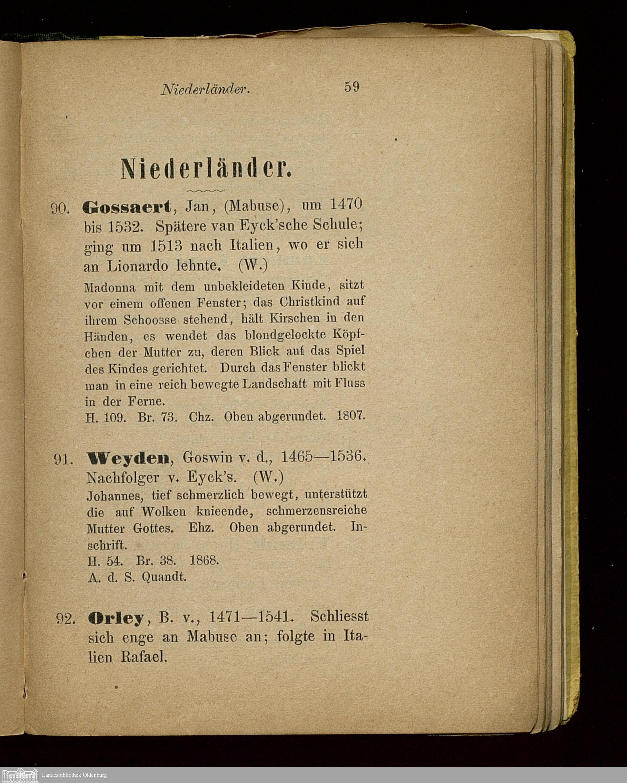Verzeichniss der Gemälde in der Grossherzoglichen Sammlung zu Oldenburg : mit einem Anhange der auf den Gemälden befindlichen Monogramme, Bezeichnungen u. Inschriften / [v. Alten]