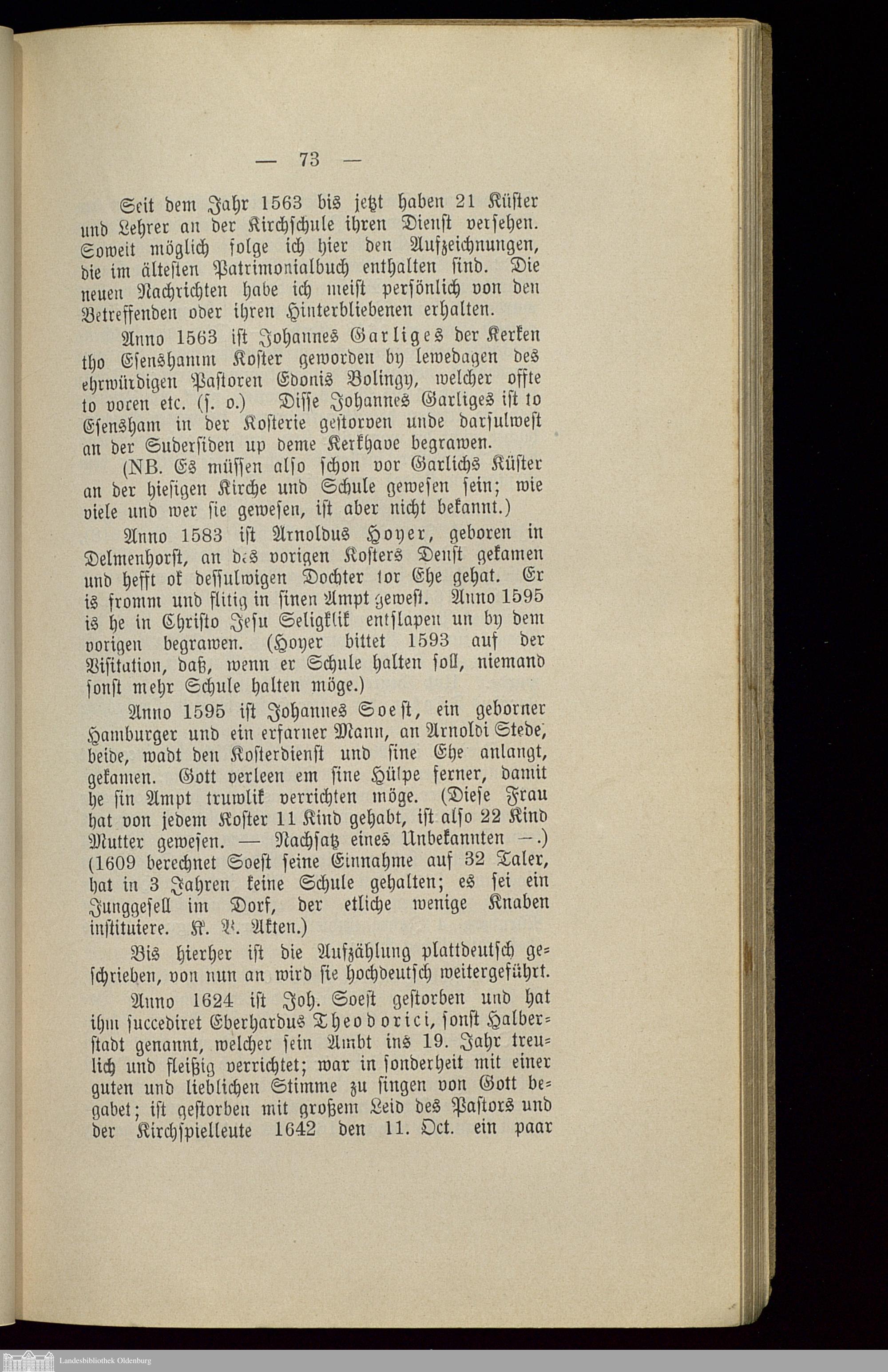 Küsterei und Küster; Schulen und Lehrer.