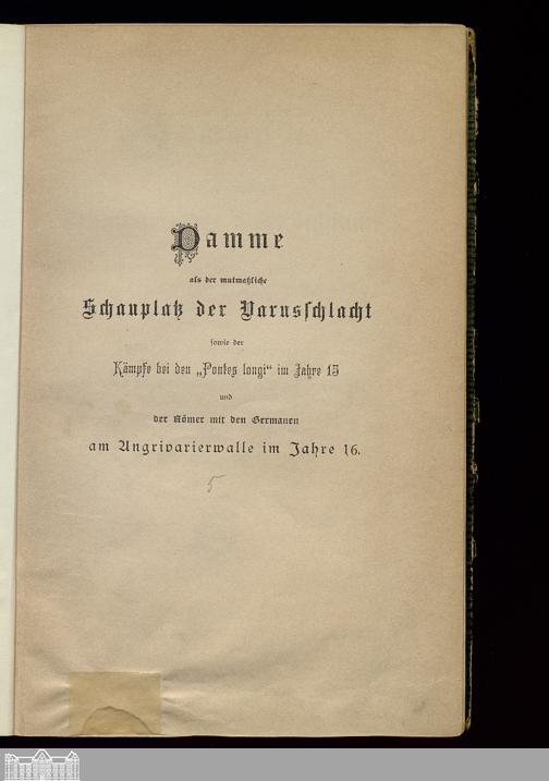 Damme als der mutmaßliche Schauplatz der Varusschlacht sowie der Kämpfe bei den "Pontes longi" im Jahre 15 und der Römer mit den Germanen am Angrivarierwalle im Jahre 16 / von Franz Böcker
