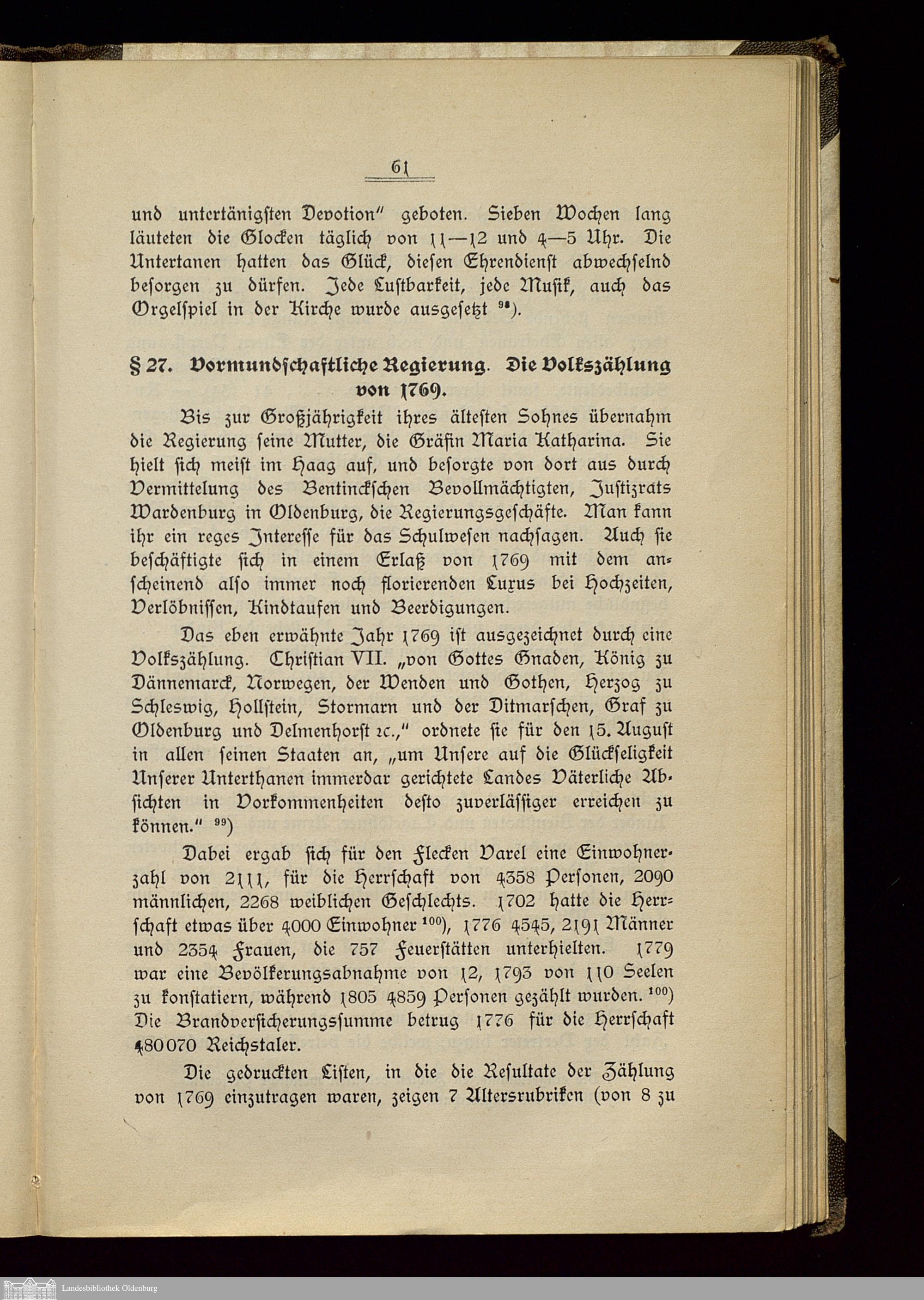 § 27. Vormundschaftliche Regierung. Die Volkszählung von 1769.
