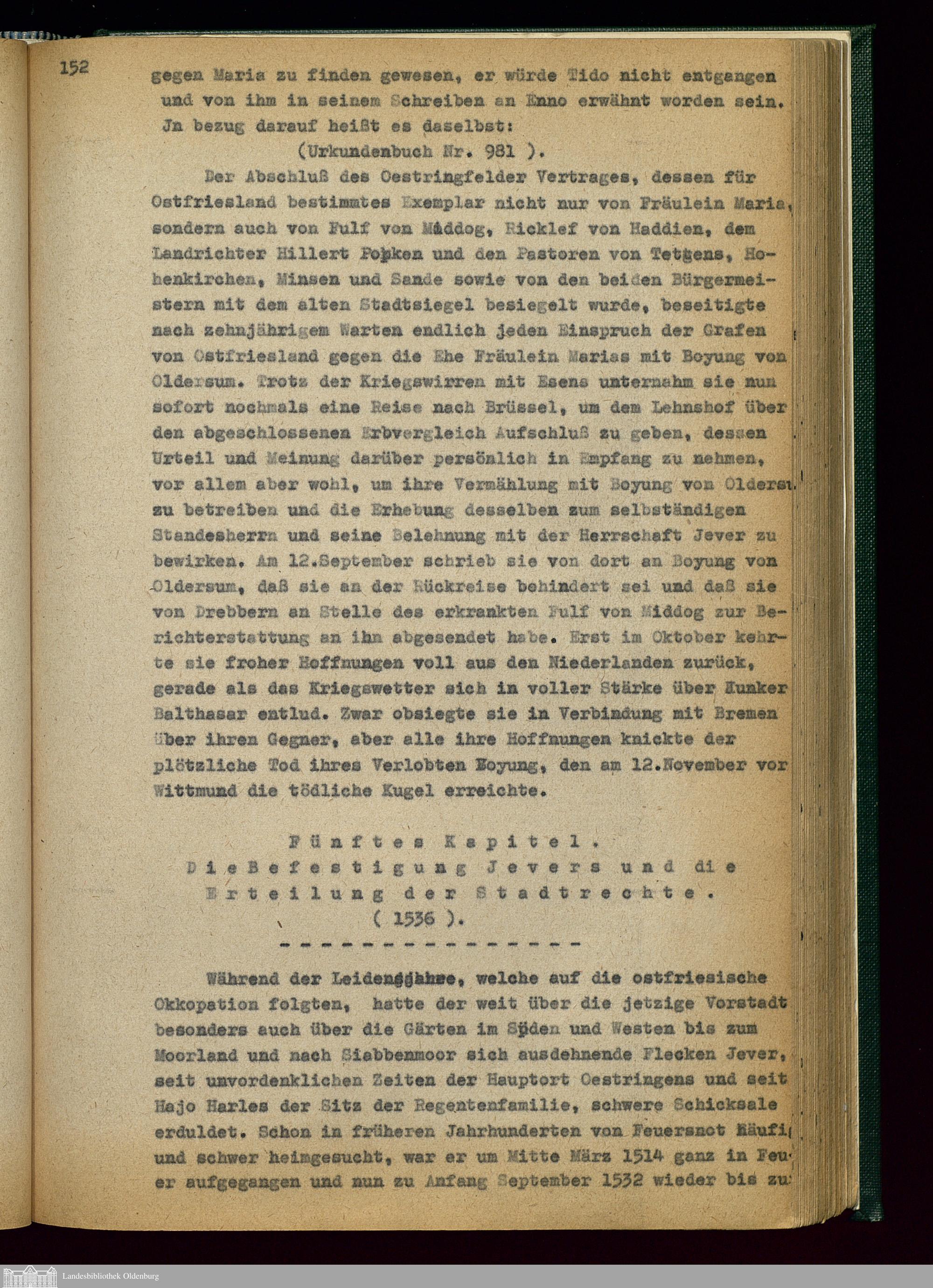 Fünftes Kapitel. Die Befestigung Jevers und die Erteilung der Stadtrechte. (1536).