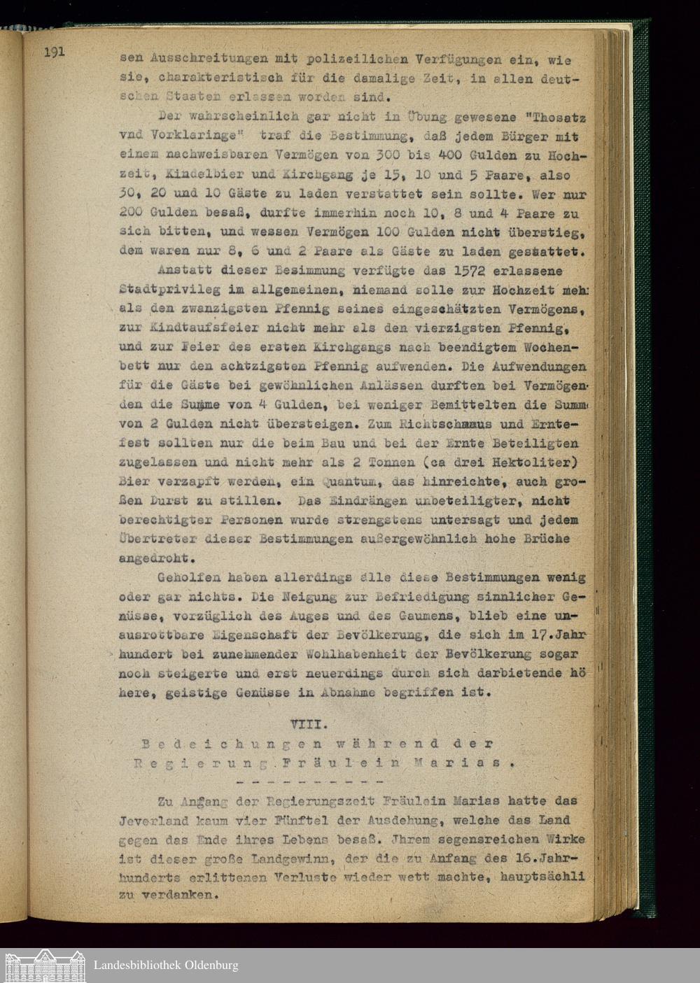 VIII. Bedeichungen während der Regierung Fräulein Marias.
