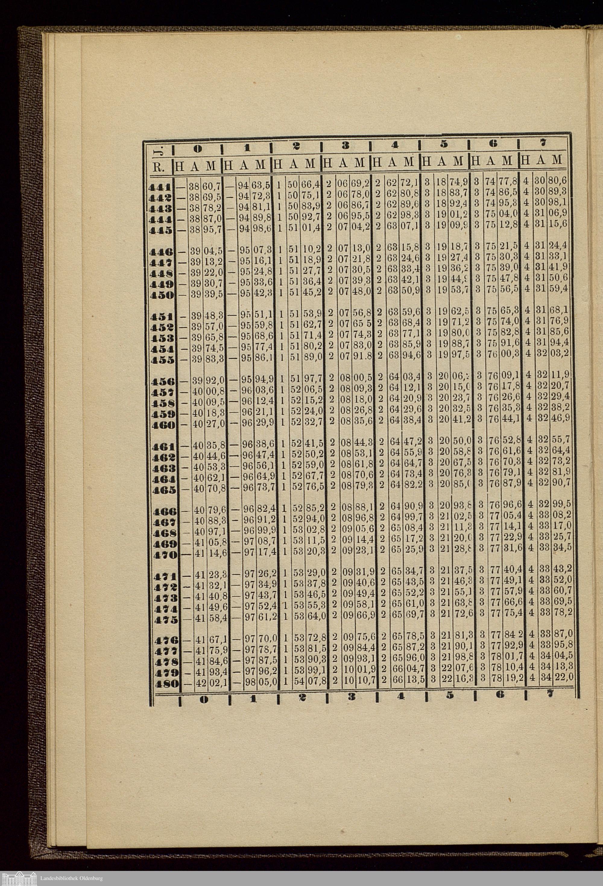 Reductions-Tabellen zur Verwandlung des oldenburgischen Kataster-Maasses in metrisches Flächenmaass und umgekehrt : nach dem Verhältniss des Oldenbg. Längen-Fusses ... / durch F. Hennings