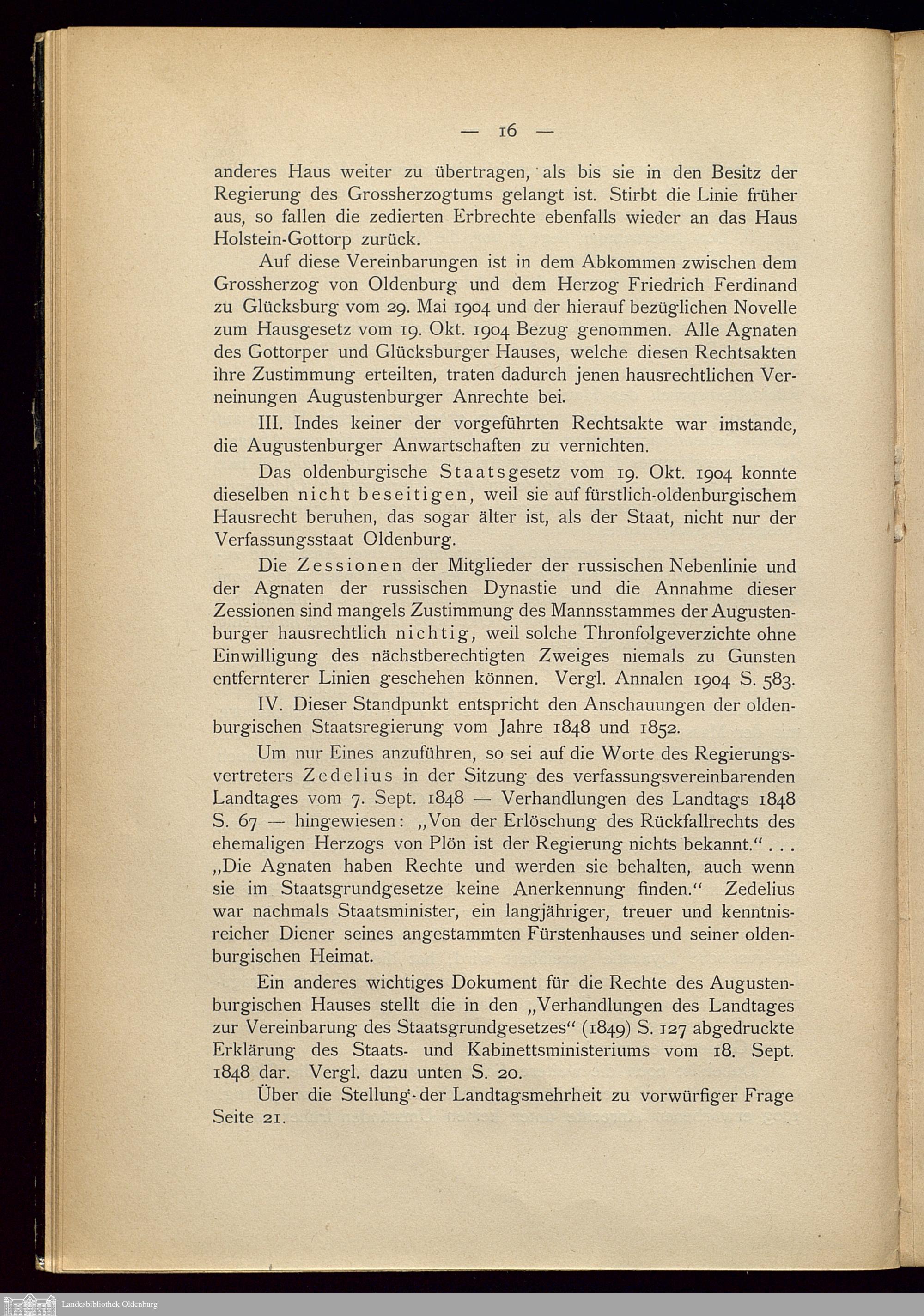 § 12. Die Verfassungsmässigkeit des Oldenburger Hausgesetzes.