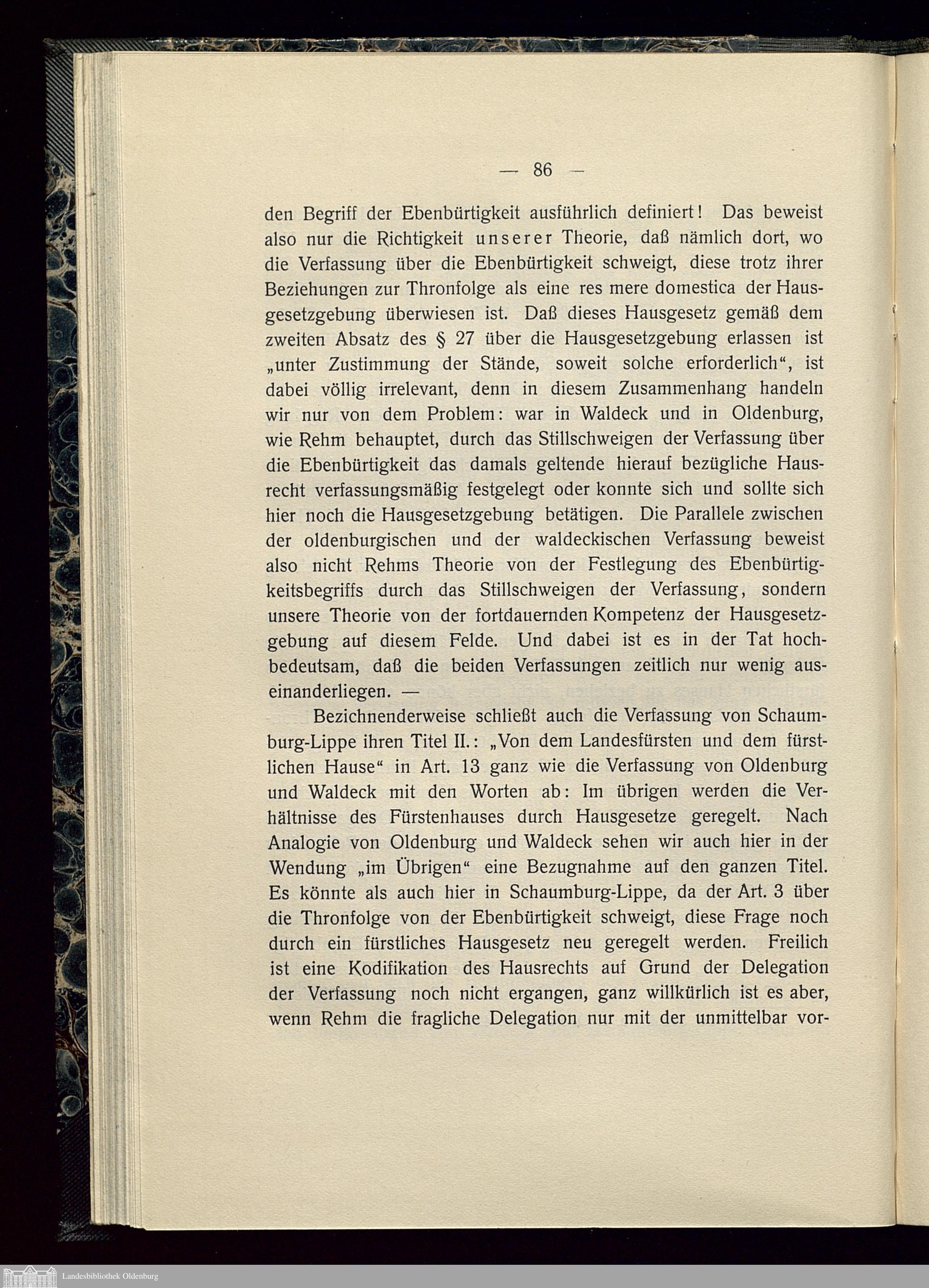 § 7. Die Tragweite des Artikels 29 § 1 der oldenburgischen Verfassung über die H...