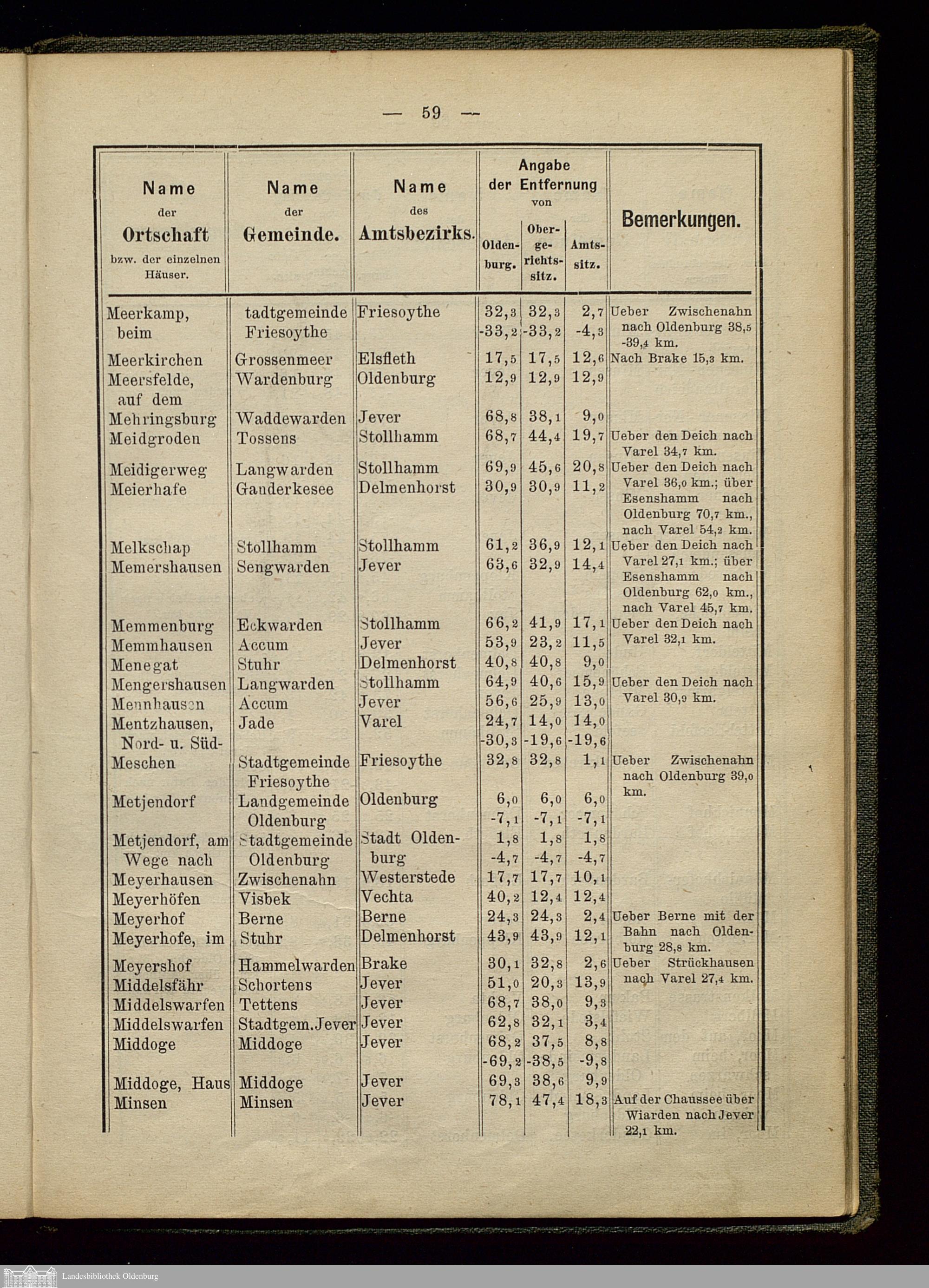 Wegemesser für das Herzogthum Oldenburg / bearb. im Auftr. des Grossherzogl. Staatsministeriums von Herm. Francke