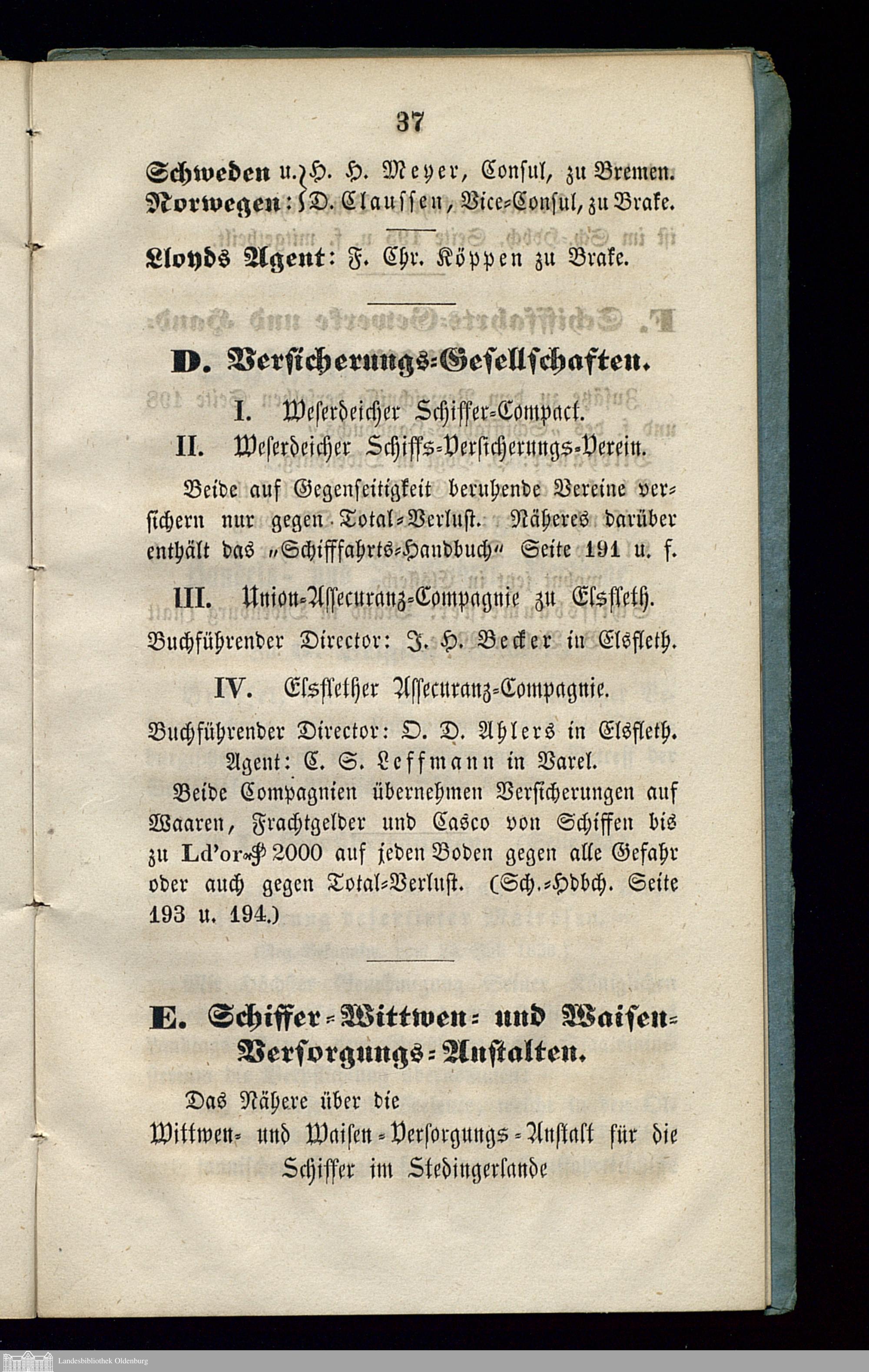 Seemanns-Kalender für 1854 : enthaltend den gewöhnlichen auf den Oldenburg. Horizont berechneten Kalender nebst Tabellen über die Declination der Sonne und des Mondes, die Zeitgleichung und die Sternzeit nach der Greenwich mittleren Zeit : mit einer Karte der Oldenb. Flaggen : als erster Nachtrag zum Schifffahrts-Handbuch / von Fr. Ant. Strackerjan