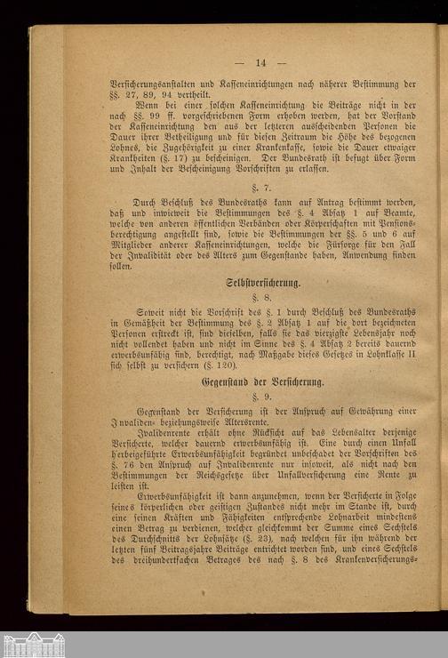 Statut der für das Herzogthum Oldenburg errichteten Versicherungsanstalt Oldenburg : nebst dem Gesetz vom 22. Juni 1889, betr. die Invaliditäts- und Altersversicherung, den zur Ausführung des Gesetzes erlassenen Ministerialbekanntmachungen vom 8. April und 30. Oktober 1890 und der Anleitung des Reichs-Versicherungsamts vom 31. Oktober 1890, betreffend den Kreis der nach dem Gesetz versicherten Personen