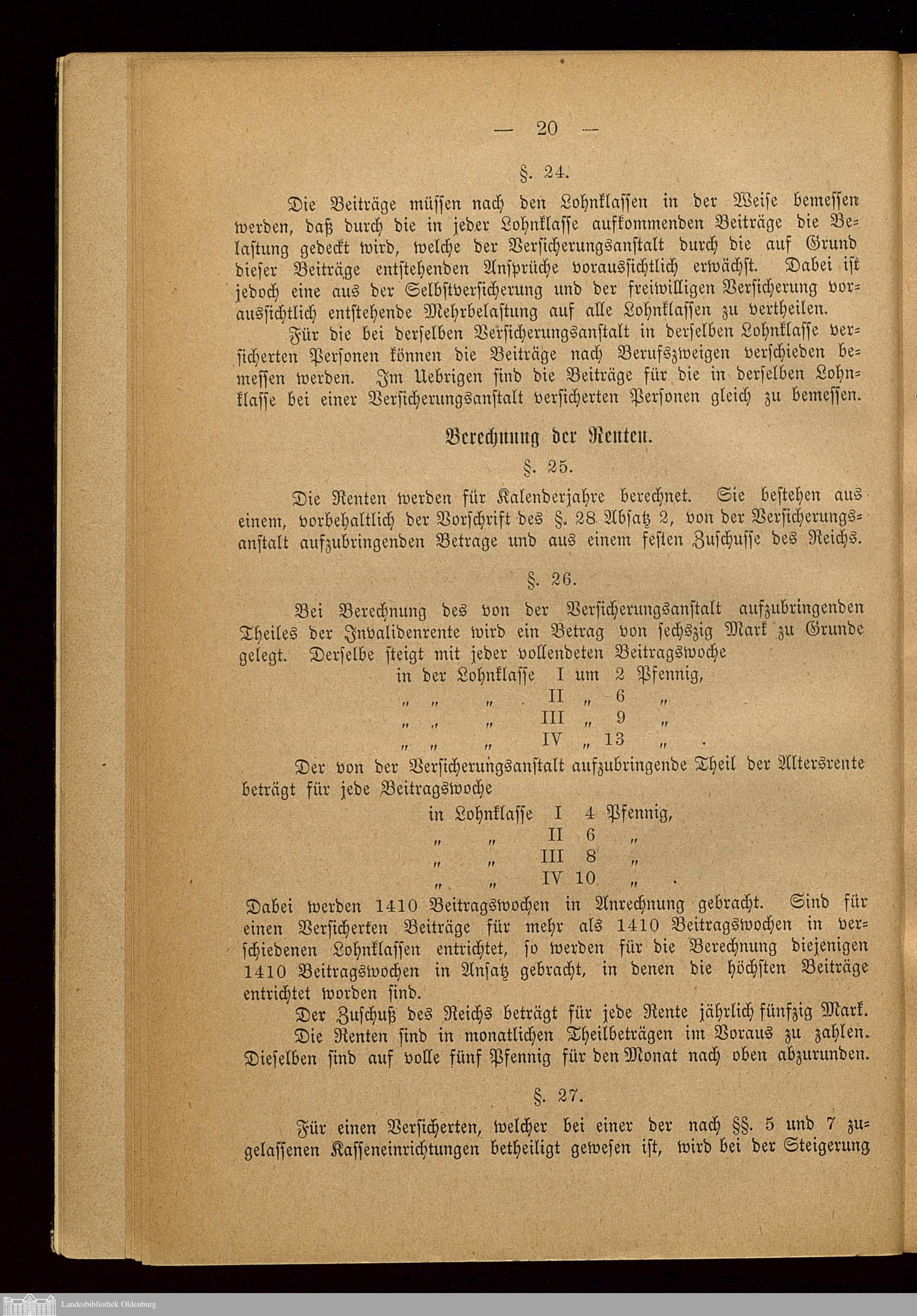 Statut der für das Herzogthum Oldenburg errichteten Versicherungsanstalt Oldenburg : nebst dem Gesetz vom 22. Juni 1889, betr. die Invaliditäts- und Altersversicherung, den zur Ausführung des Gesetzes erlassenen Ministerialbekanntmachungen vom 8. April und 30. Oktober 1890 und der Anleitung des Reichs-Versicherungsamts vom 31. Oktober 1890, betreffend den Kreis der nach dem Gesetz versicherten Personen
