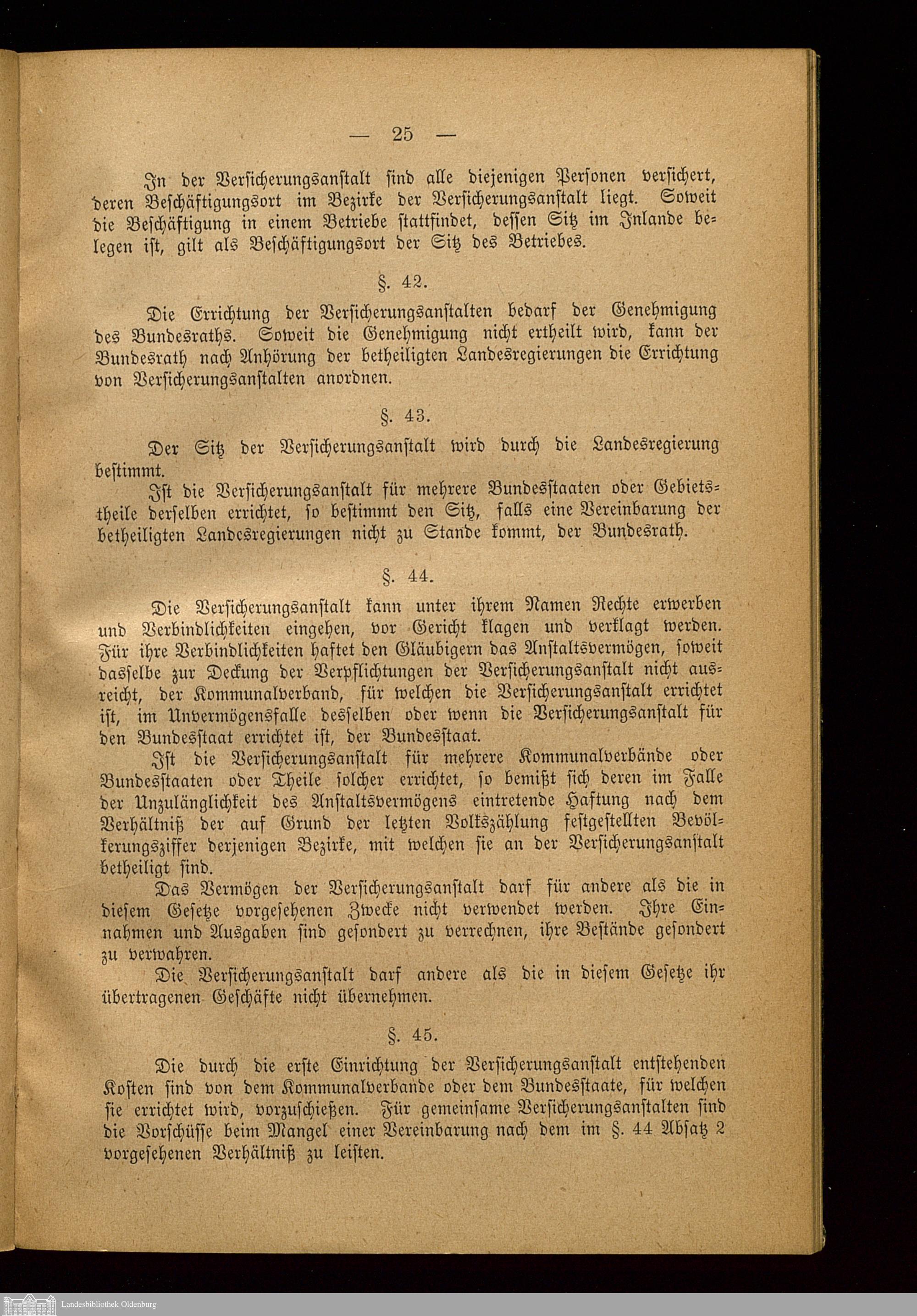 Statut der für das Herzogthum Oldenburg errichteten Versicherungsanstalt Oldenburg : nebst dem Gesetz vom 22. Juni 1889, betr. die Invaliditäts- und Altersversicherung, den zur Ausführung des Gesetzes erlassenen Ministerialbekanntmachungen vom 8. April und 30. Oktober 1890 und der Anleitung des Reichs-Versicherungsamts vom 31. Oktober 1890, betreffend den Kreis der nach dem Gesetz versicherten Personen