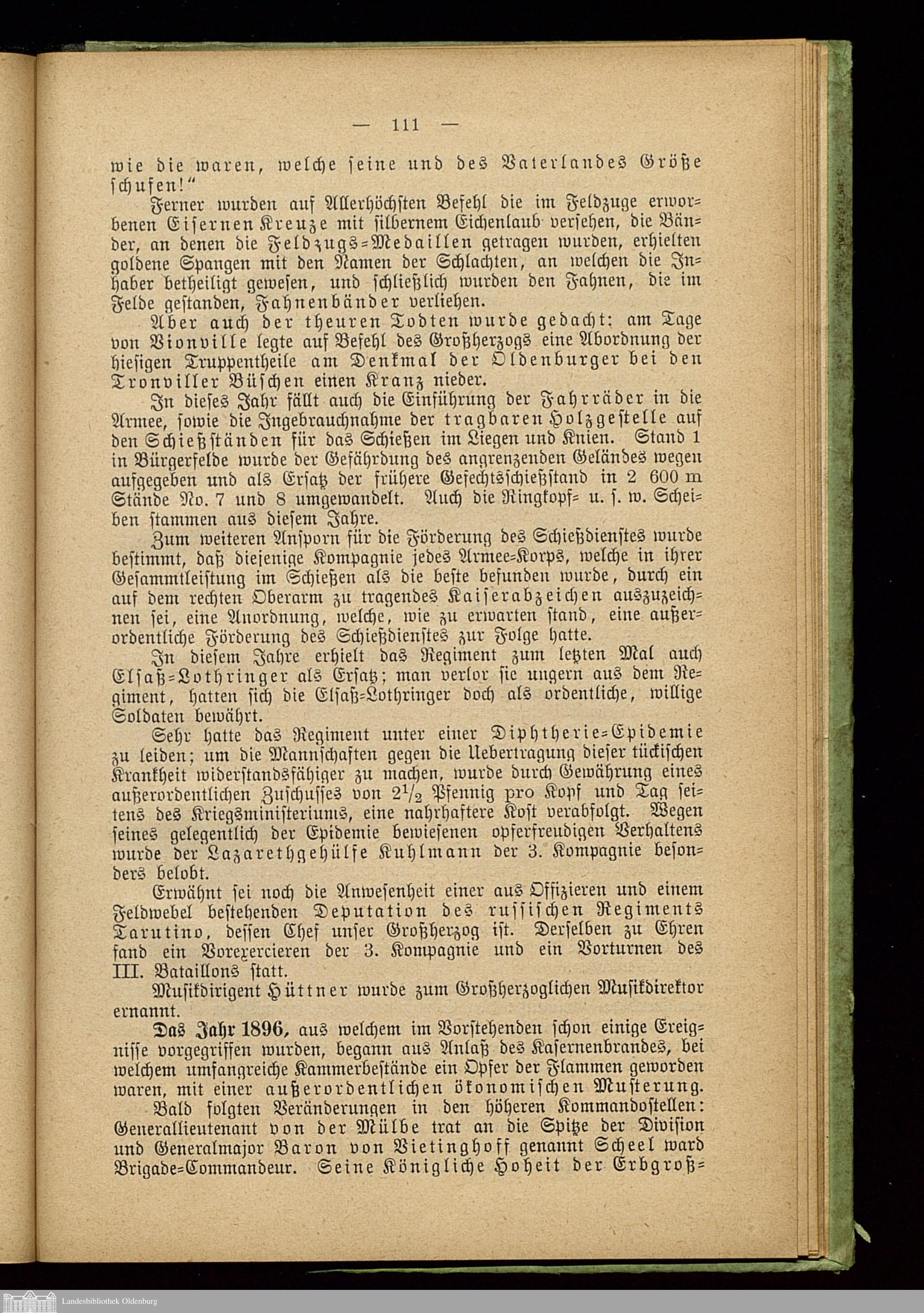 Geschichte des Oldenburgischen Infanterie-Regiments Nr. 91 / auf dienstliche Veranlassung für die Mannschaften des Regiments bearbeitet von von Rohr, verstorbenen Oberstleutnant a.D., s.Zt. Premierlieutenant im Regiment, und bis auf die Neuzeit vervollständigt von Frhr. von Puttkamer, Hauptmann und Kompagnie-Chef im Regiment