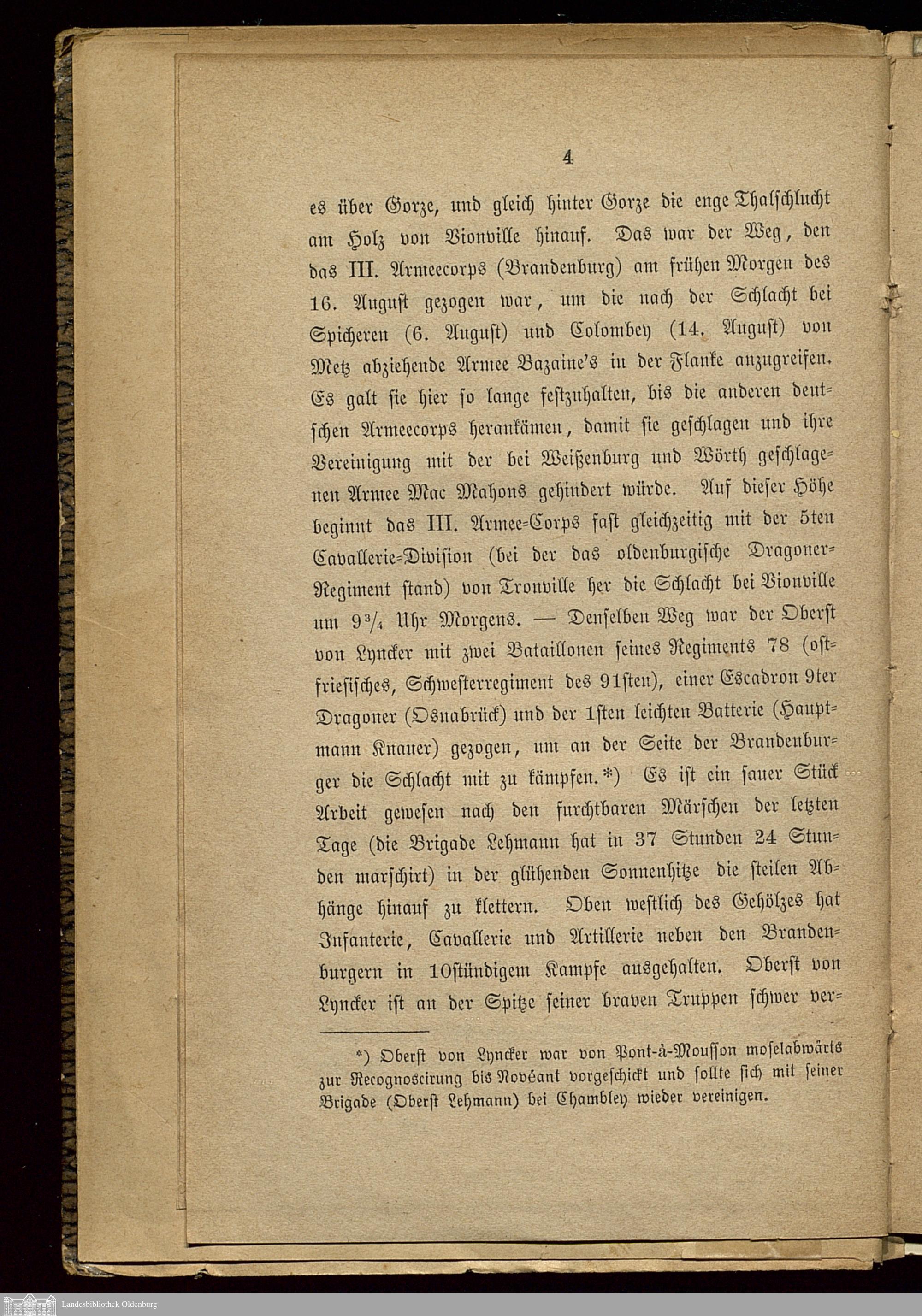 Das Denkmal der Oldenburger bei Vionville : eine Erinnerung an den 16. Aug. 1870 ; mit vielen Ill. in Helogr. und Holzschnitt und 1 Spezialkt. des Schlachtfeldes bei Mars-la-Tour / von Krohne