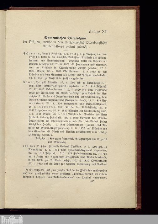 Anlage XI. Namentliches Verzeichnis der Offiziere, welche in dem Großherzoglich Oldenburgischen...