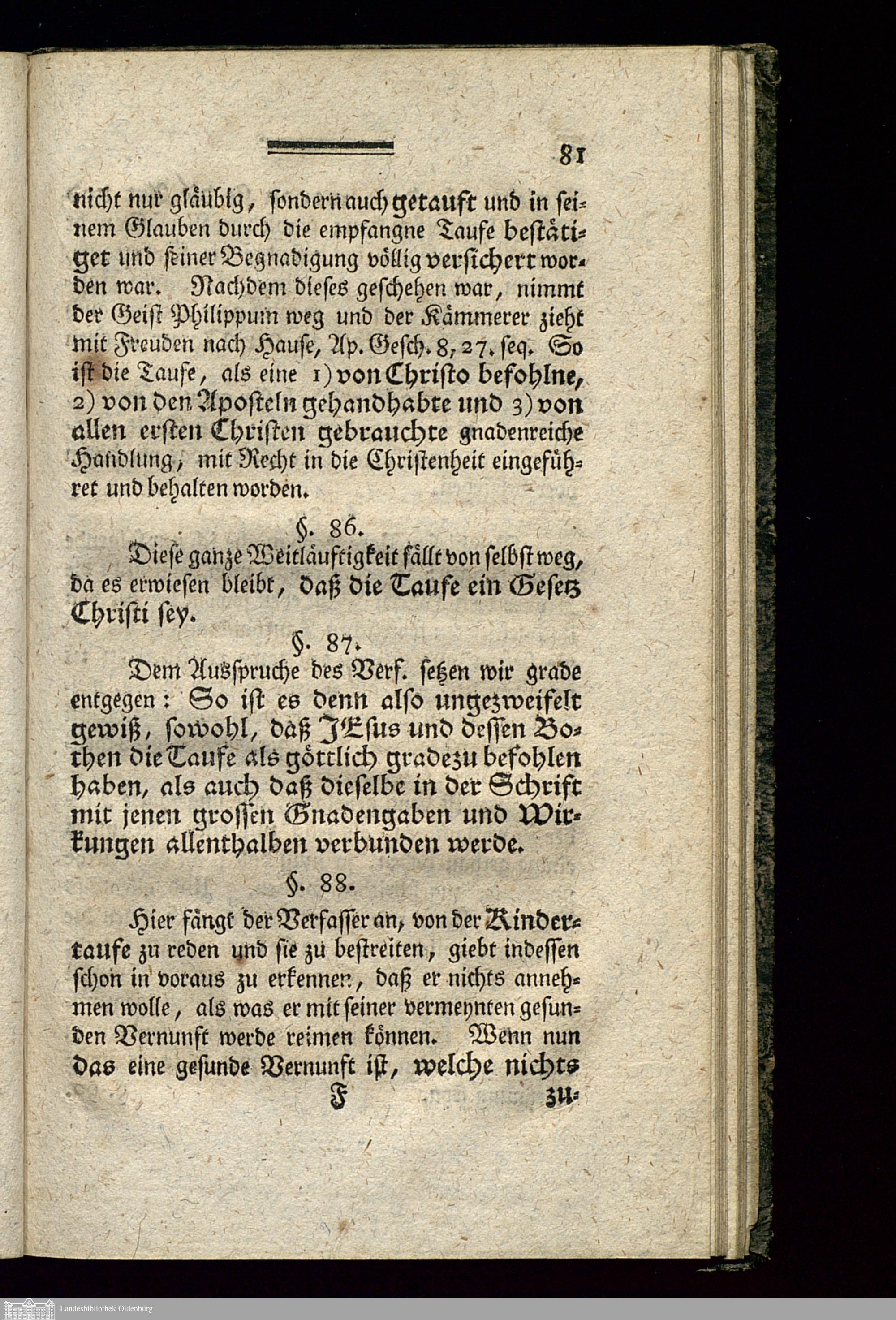 Die Taufe der Christen doch ein Gesetz oder Verordnung Christi und kein blos ehrwürdiger Gebrauch.
