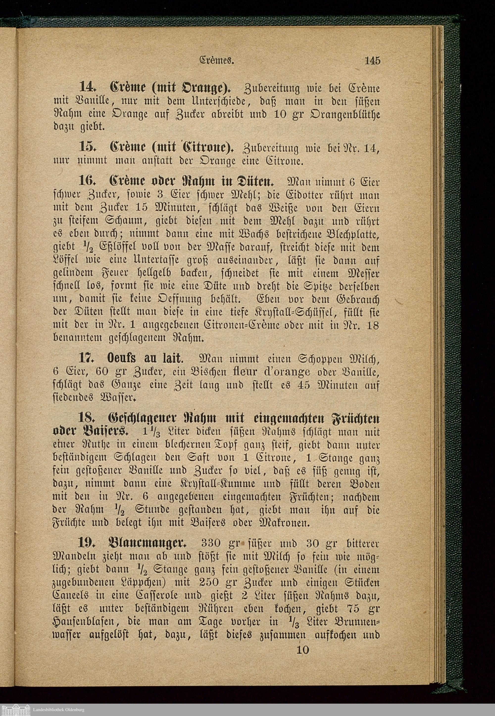 Gefrornes, Crèmes und Gelées.
