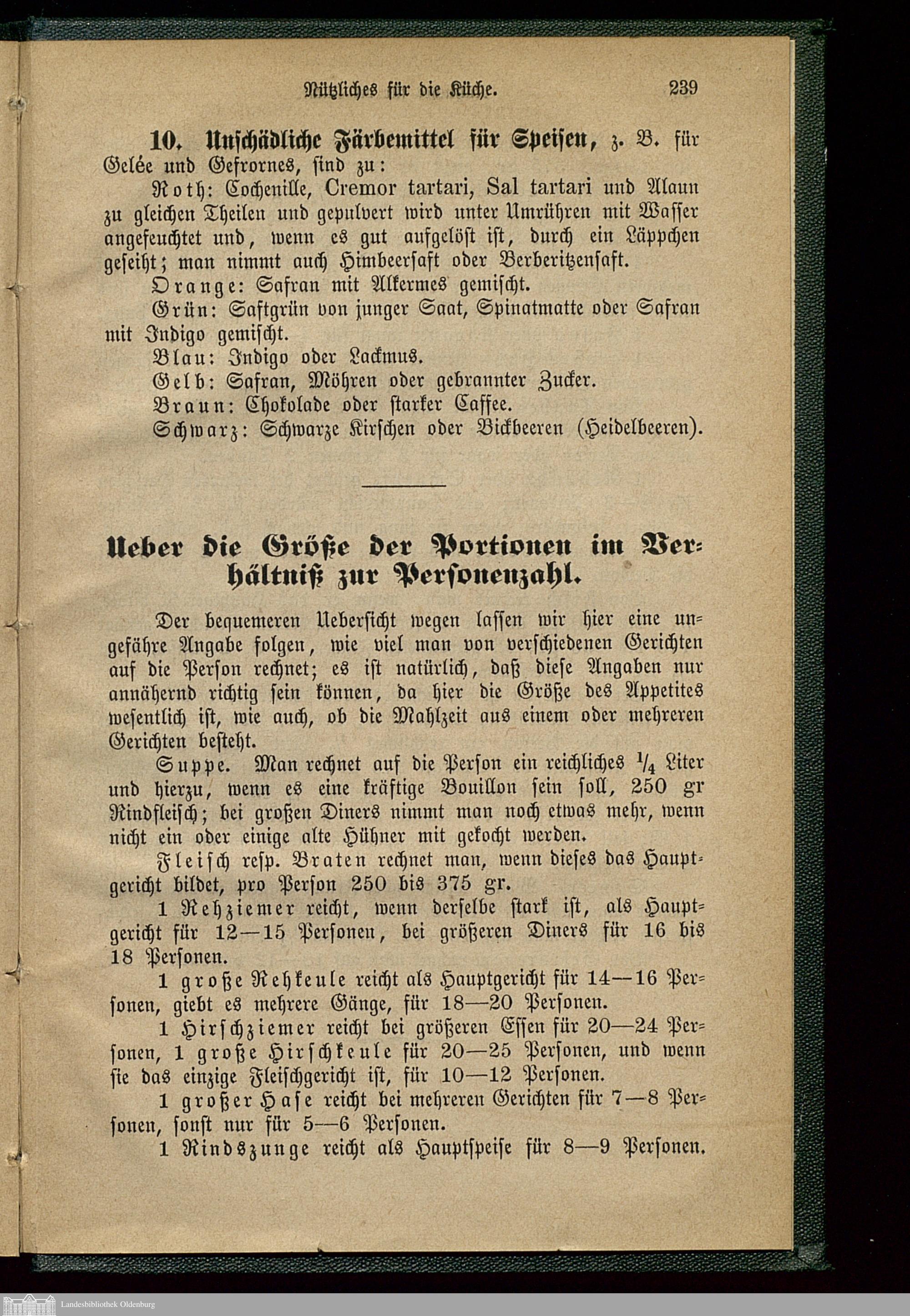 Ueber die Größe der Portionen im Verhältnis zur Personenzahl.