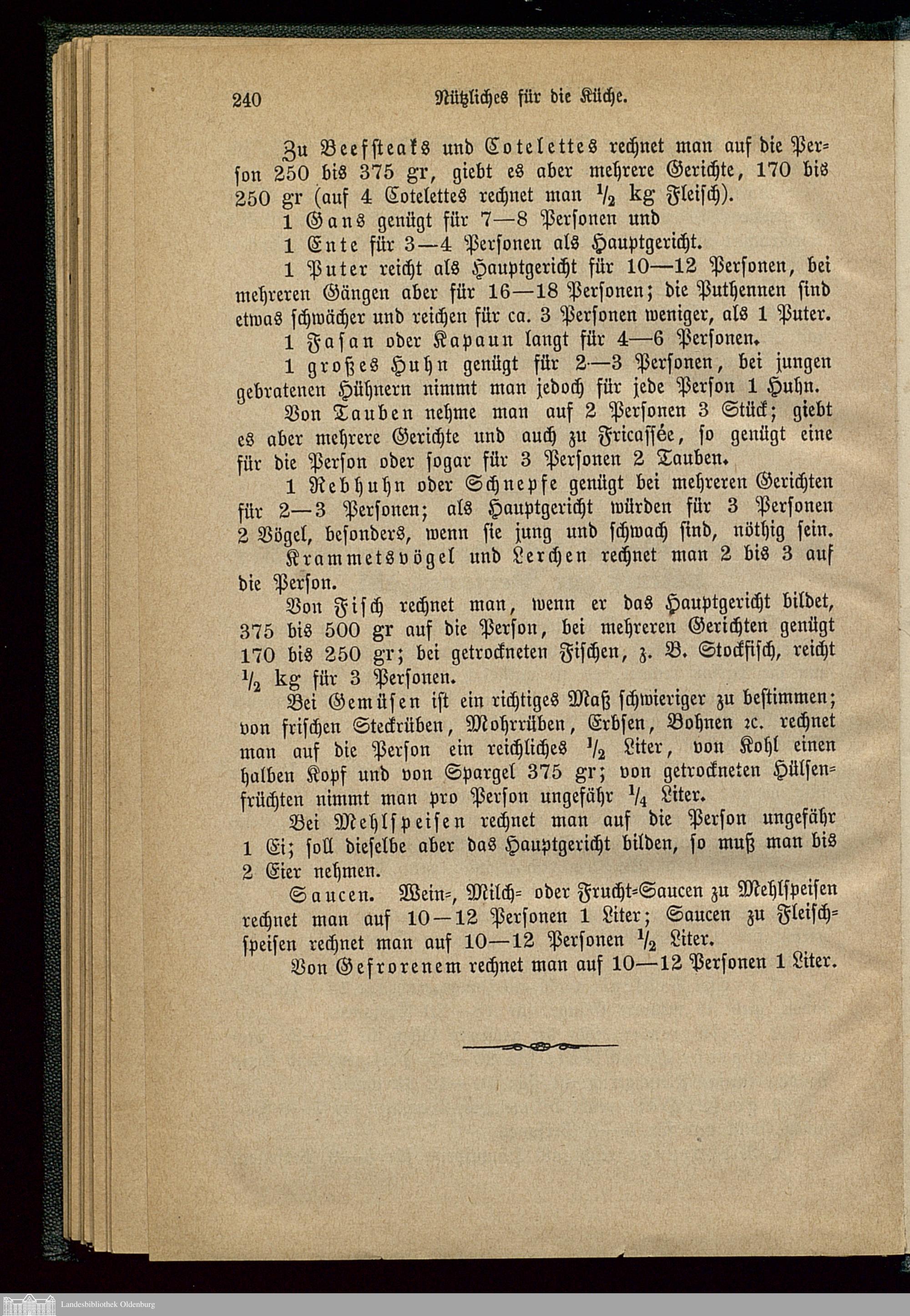 Ueber die Größe der Portionen im Verhältnis zur Personenzahl.