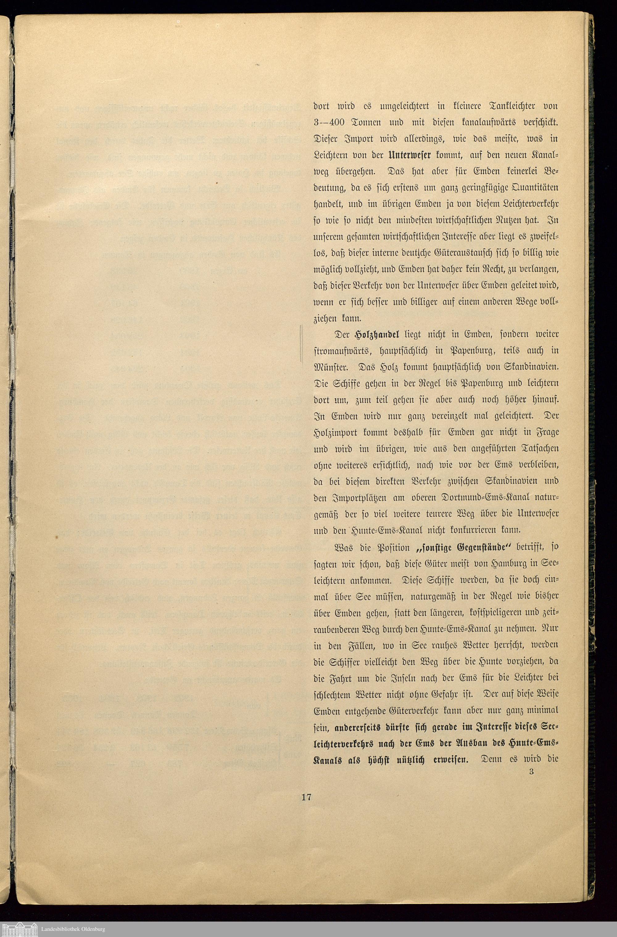 III. Güterbewegung auf dem Hunte-Ems-Kanal und seine Bedeutung für Handel, Industrie und Schiffahrt.