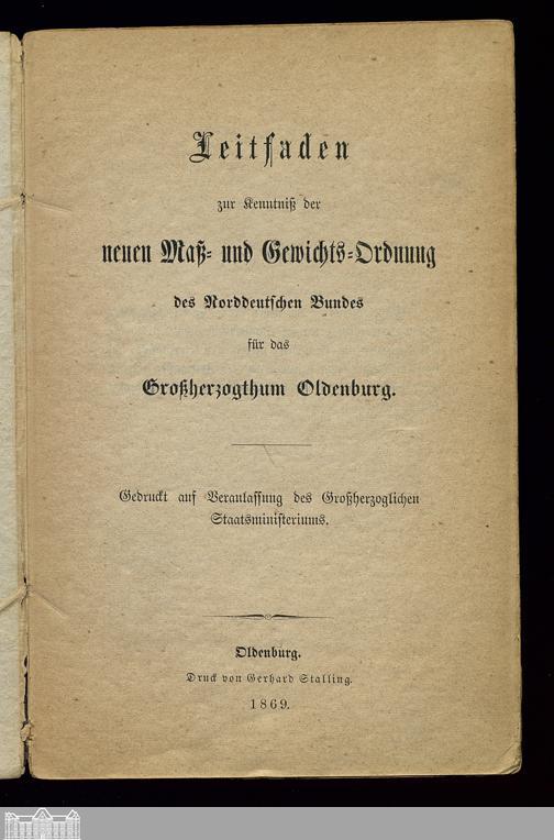 Leitfaden zur Kenntniß der neuen Maß- und Gewichts-Ordnung des Norddeutschen Bundes für das Großherzogthum Oldenburg / ... auf Veranlassung des Großherzoglichen Staatsministeriums
