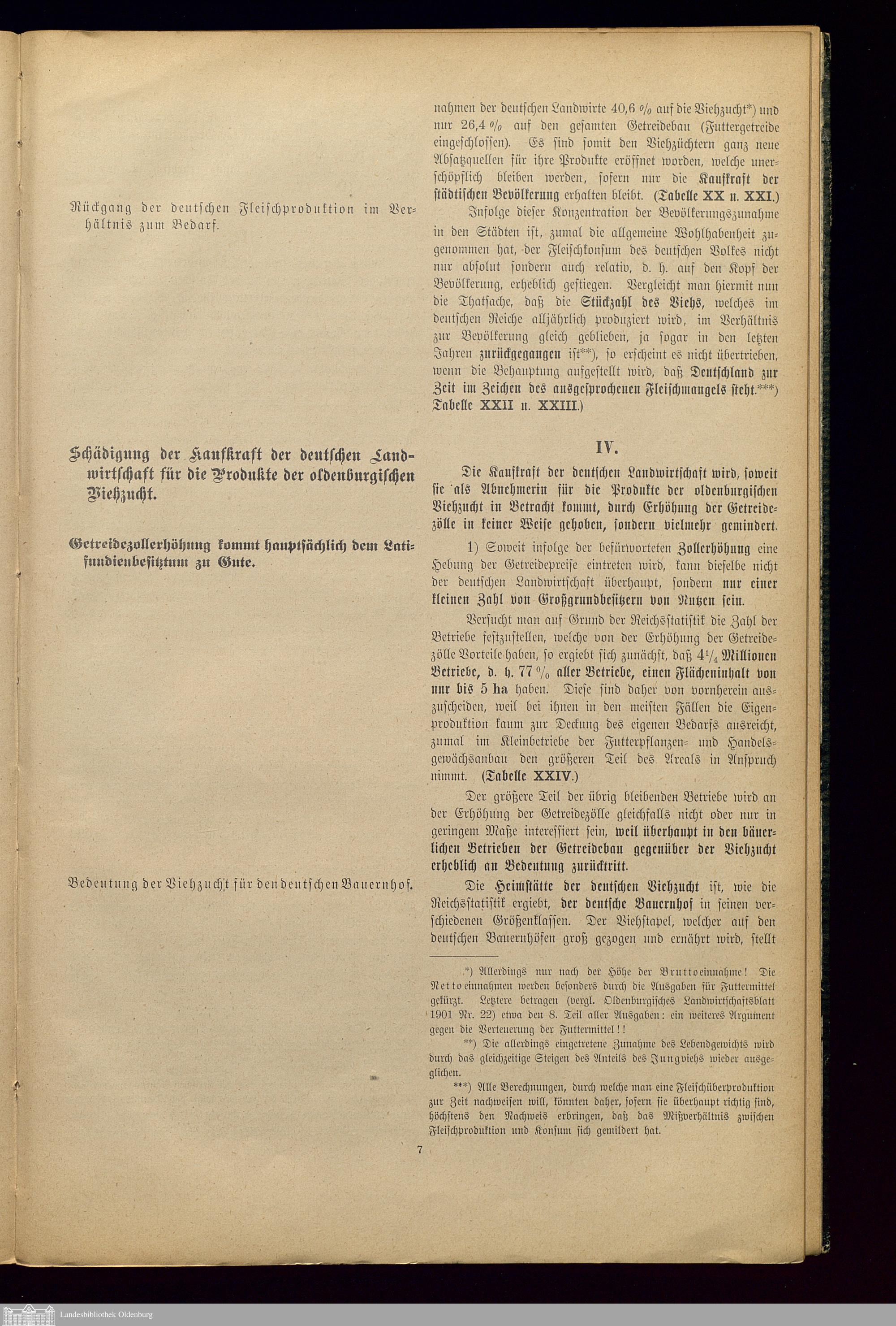 IV. Schädigung der Kaufkraft der deutschen Landwirtschaft für die Produkte der oldenburgischen Viehzucht.