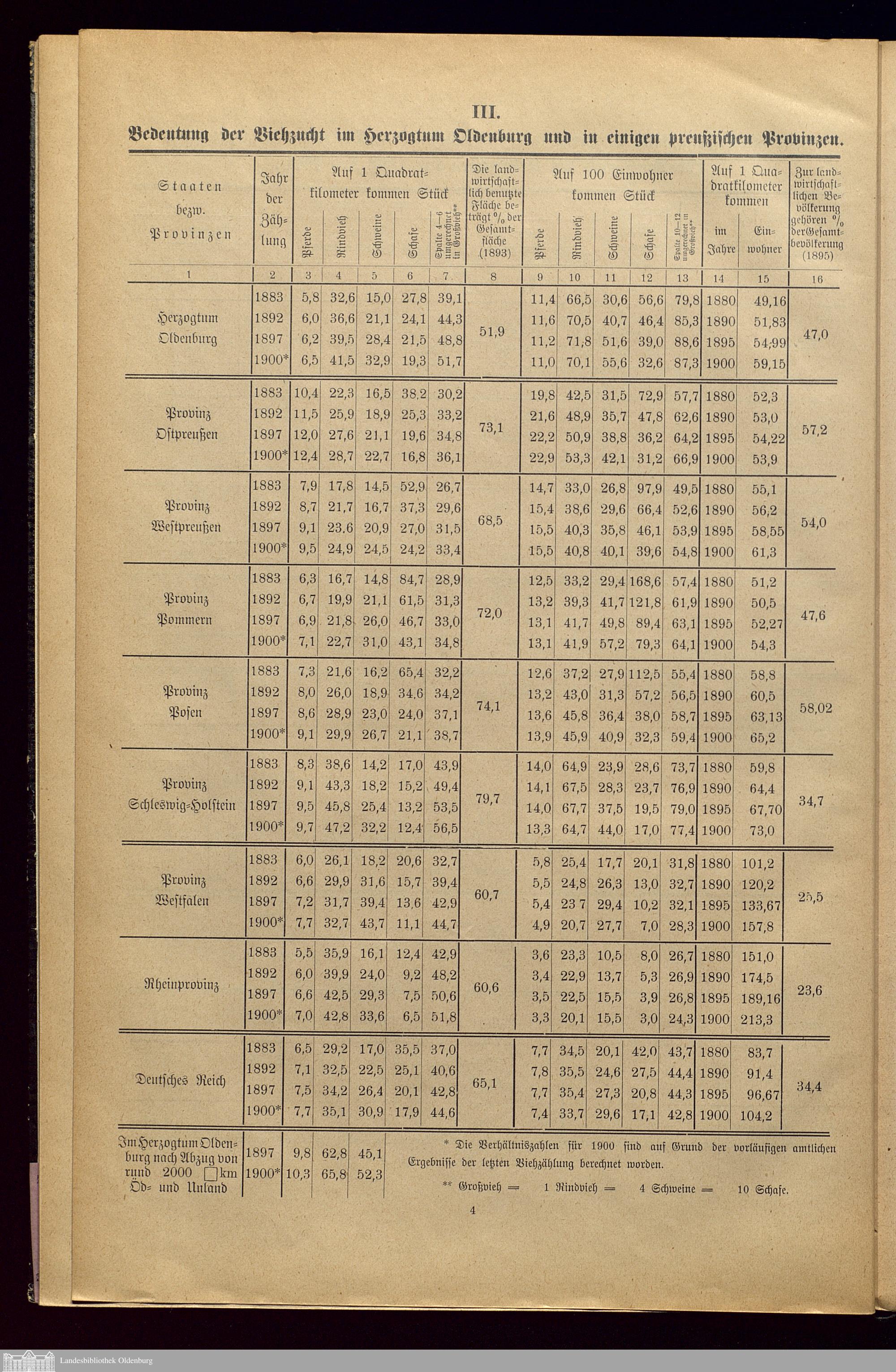 III. Bedeutung der Viehzucht im Herzogtum Oldenburg und in einigen preußischen P...