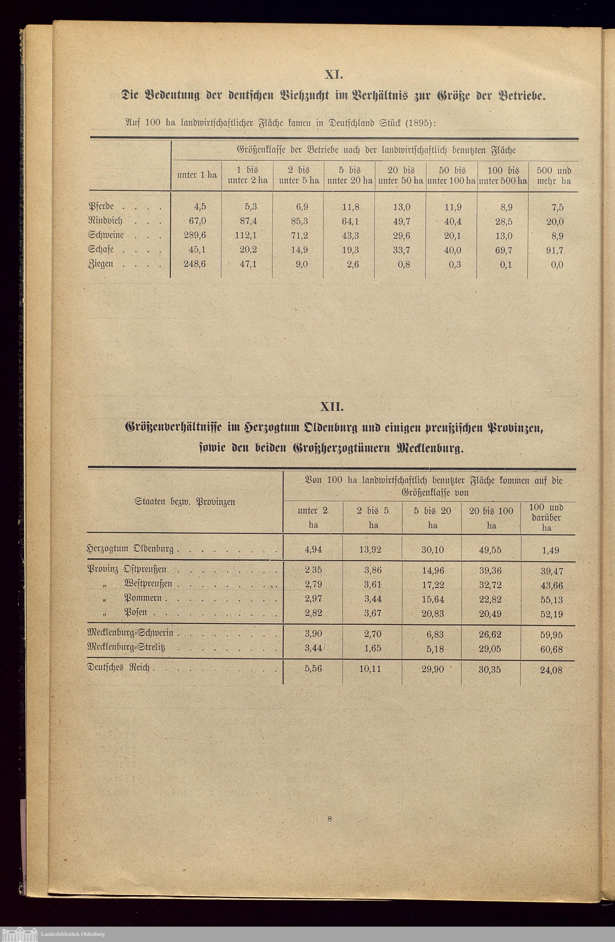 XI. Die Bedeutung der deutschen Viehzucht im Verhältnis zur Größe der Betriebe.
