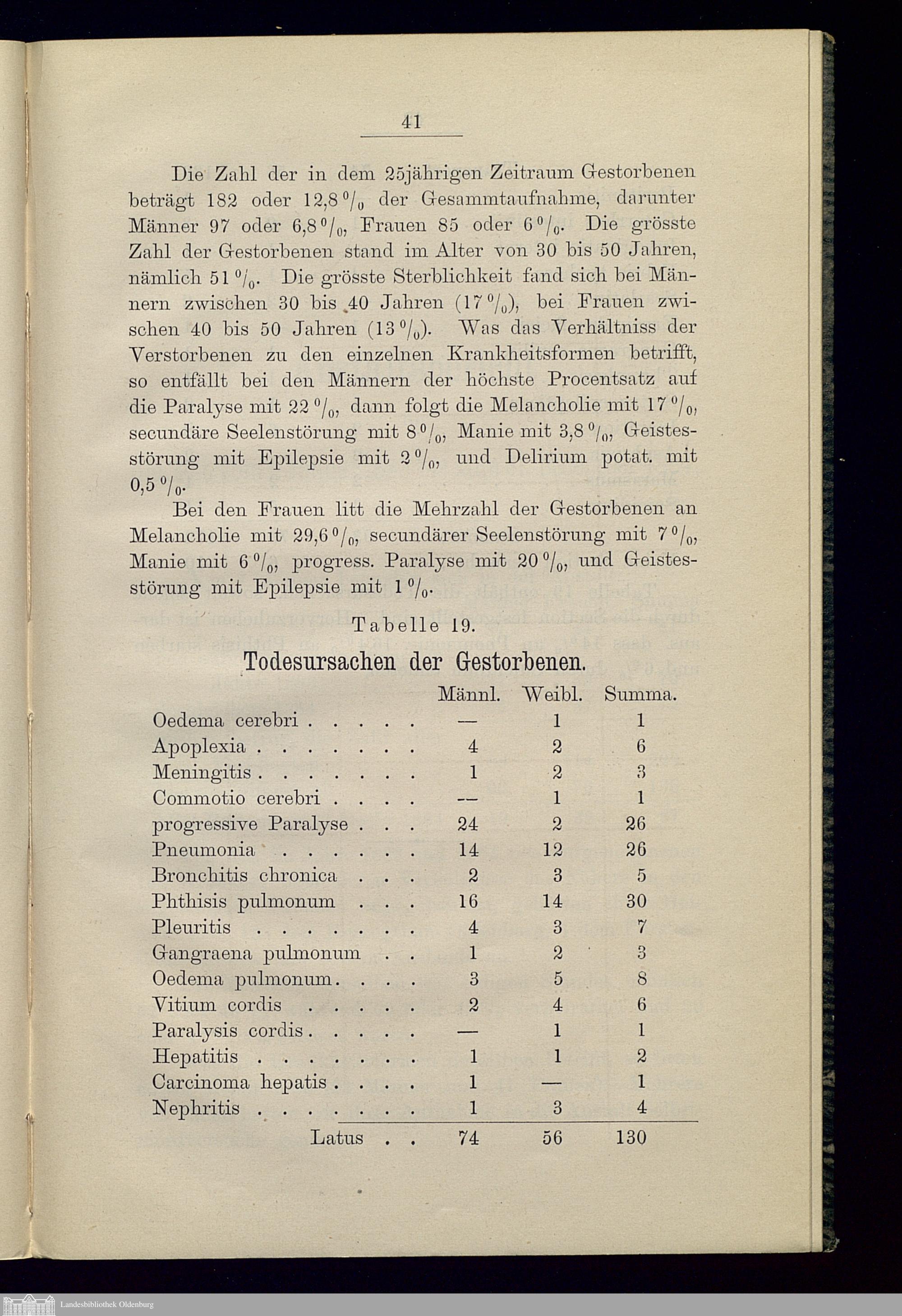Statistische Mittheilungen über die Wirksamkeit der Grossherzogl. Oldenburgischen Irrenheilanstalt zu Wehnen während der ersten 25 Jahre ihres Bestehens : nebst einem Anstaltsbericht für die Zeit vom 1. Januar 1883 bis zum 31. December 1884 / von Dr. Hemkes