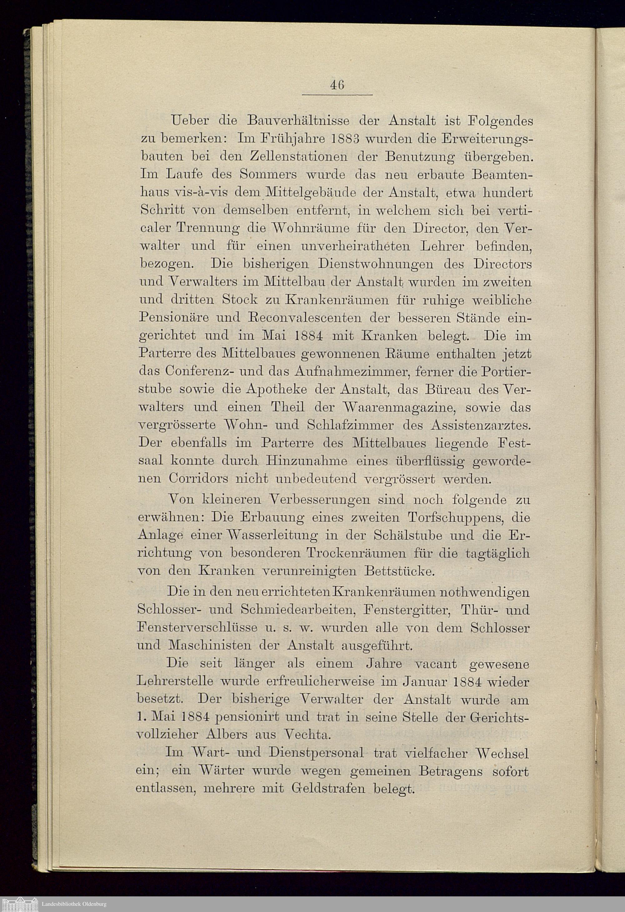 Statistische Mittheilungen über die Wirksamkeit der Grossherzogl. Oldenburgischen Irrenheilanstalt zu Wehnen während der ersten 25 Jahre ihres Bestehens : nebst einem Anstaltsbericht für die Zeit vom 1. Januar 1883 bis zum 31. December 1884 / von Dr. Hemkes