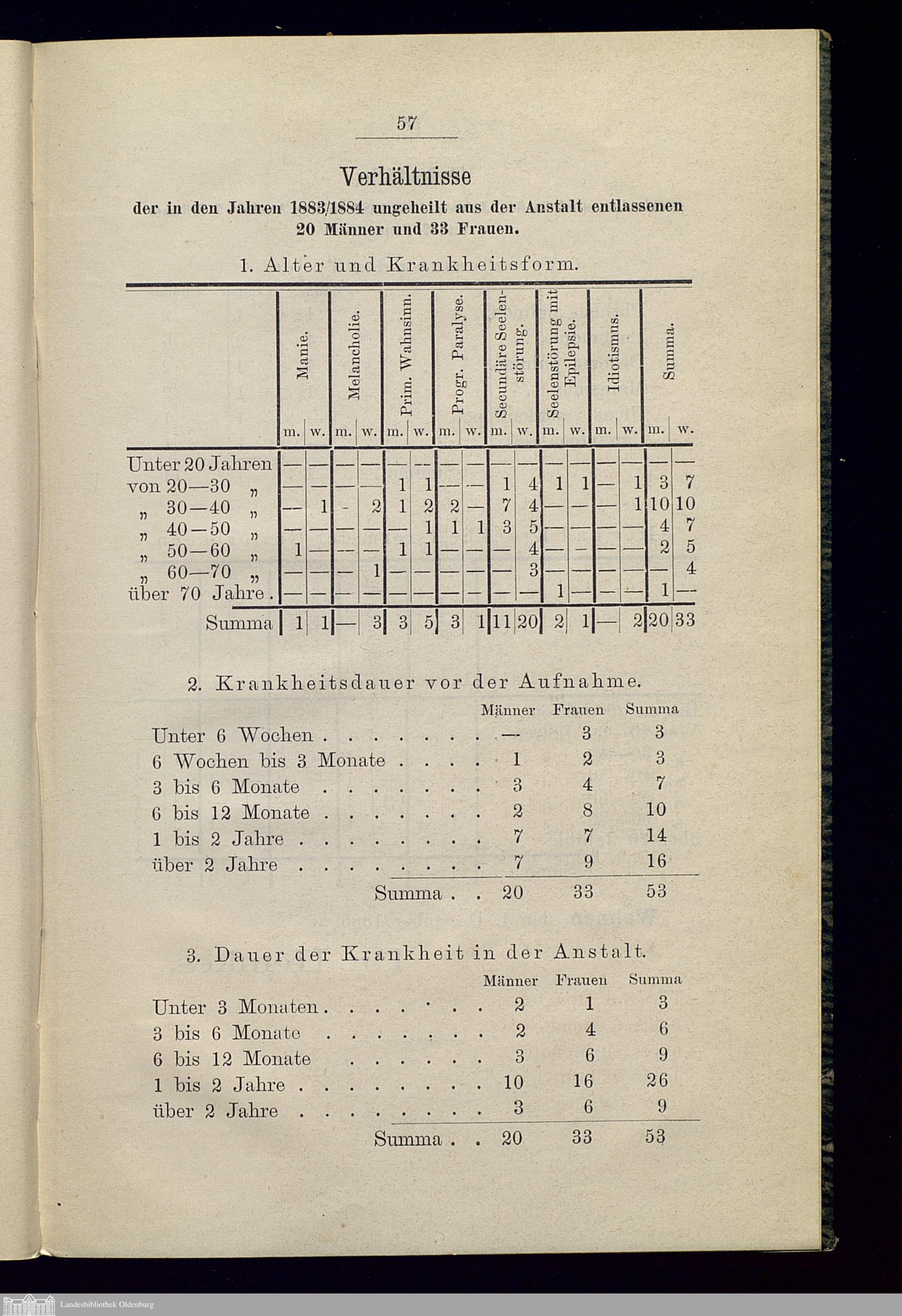 Statistische Mittheilungen über die Wirksamkeit der Grossherzogl. Oldenburgischen Irrenheilanstalt zu Wehnen während der ersten 25 Jahre ihres Bestehens : nebst einem Anstaltsbericht für die Zeit vom 1. Januar 1883 bis zum 31. December 1884 / von Dr. Hemkes