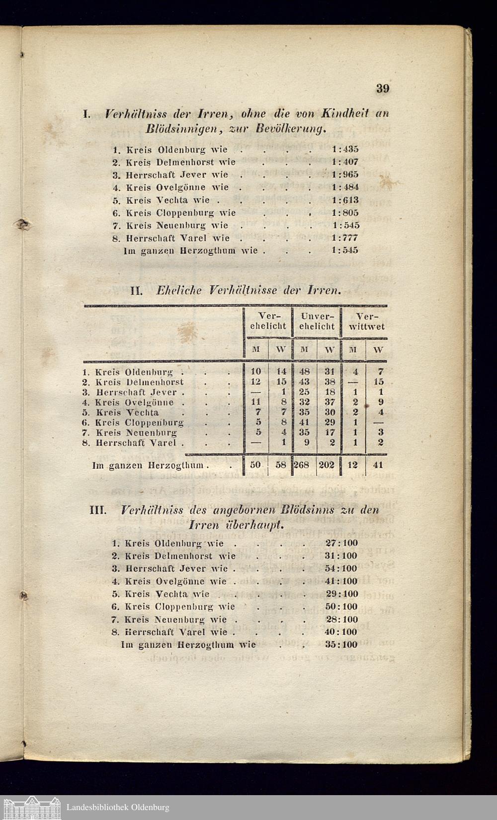 Irrenstatistik des Herzogthums Oldenburg