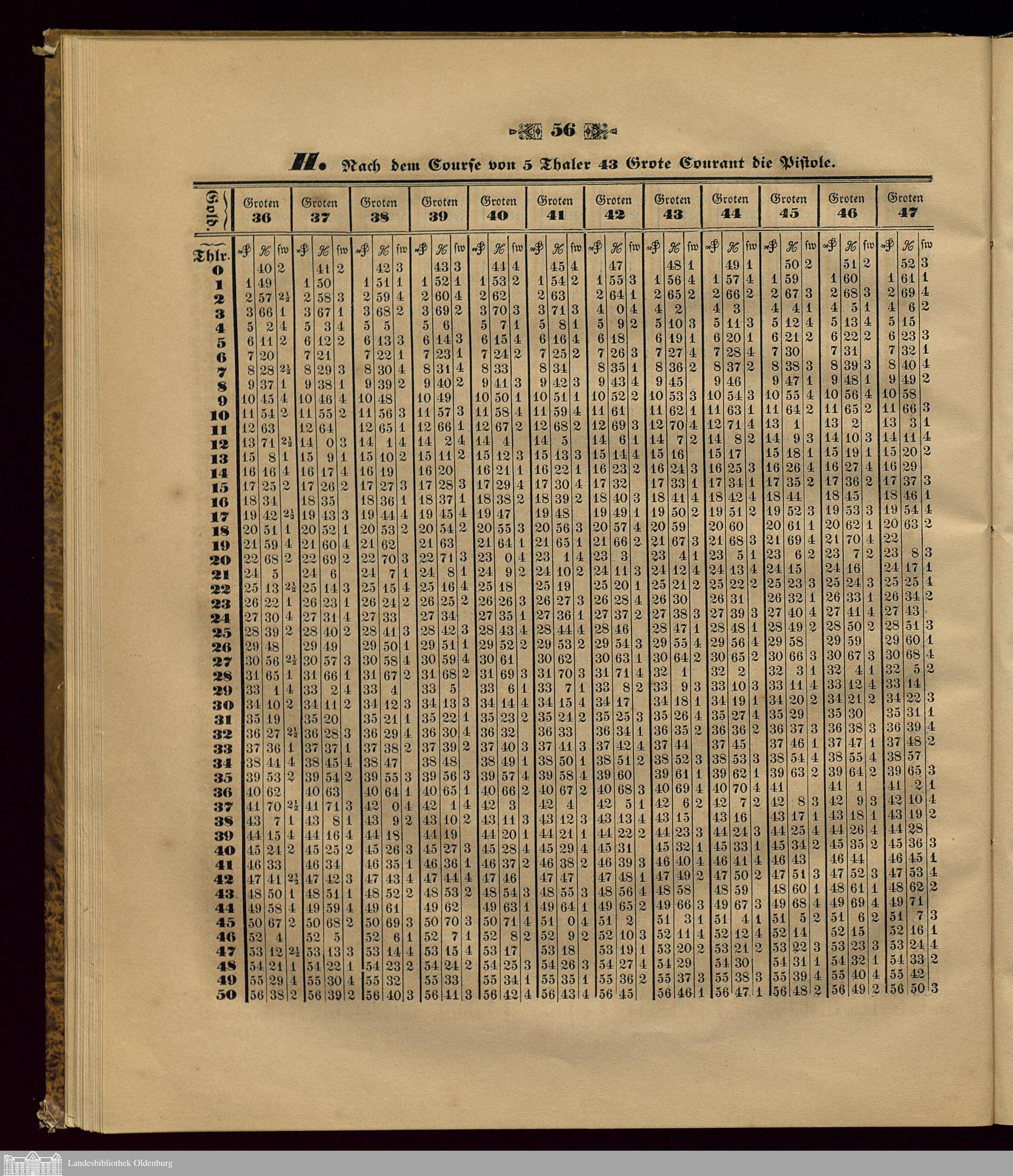 H. Nach dem Course von 5 Thaler 43 Grote Courant die Pistole.
