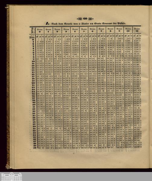 Reductions-Tabelle des Goldes in Courant : nach den muthmaßlich wechselnden Coursen der Pistole von 5 Thaler 36 Grote an bis zu 5 Thaler 48 Grote inclusive / berechnet von G. D. Klockgeter, Cammerrevisor in Oldenburg