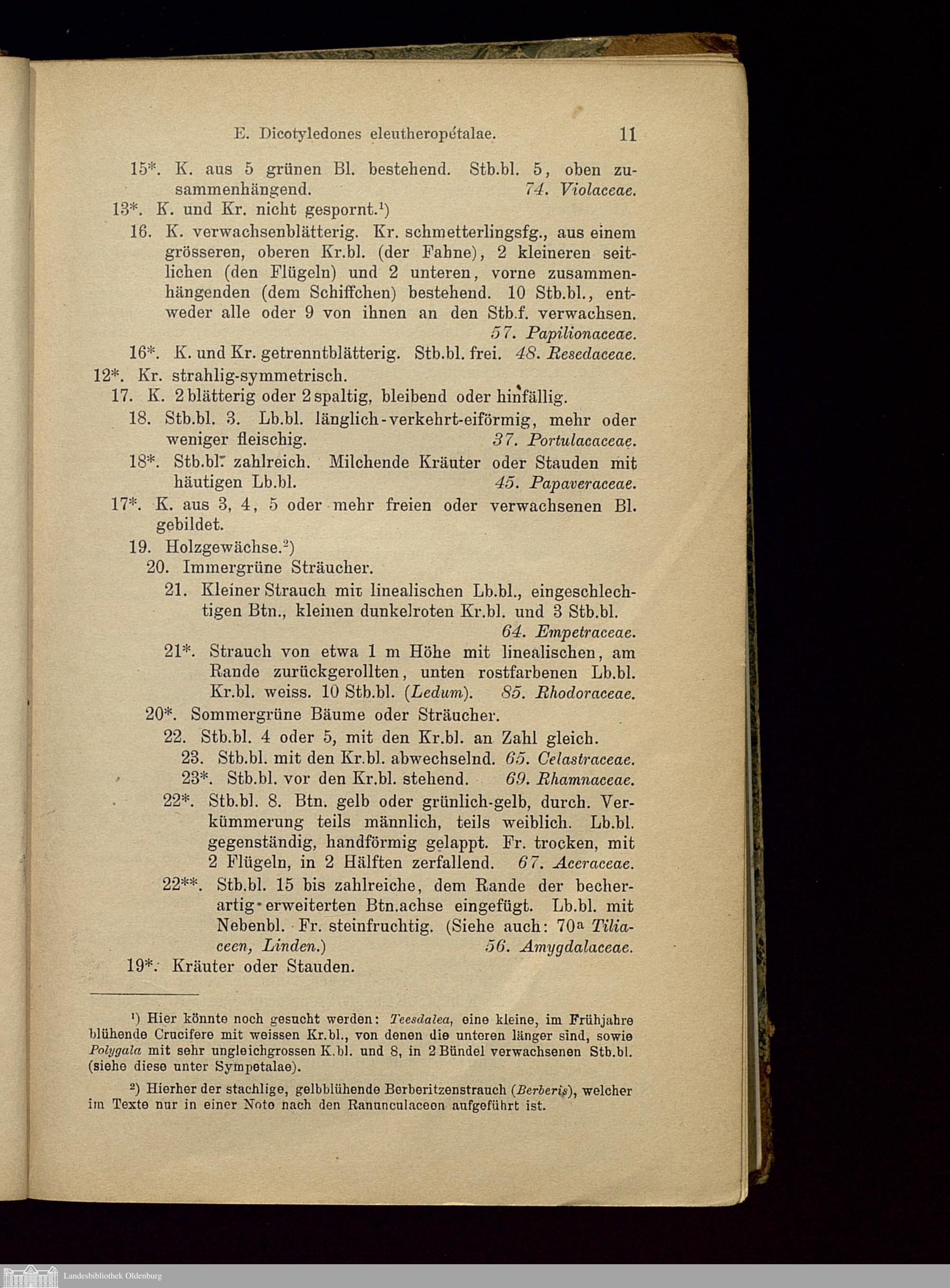 II. Tabelle. Zum Bestimmen der Familien.