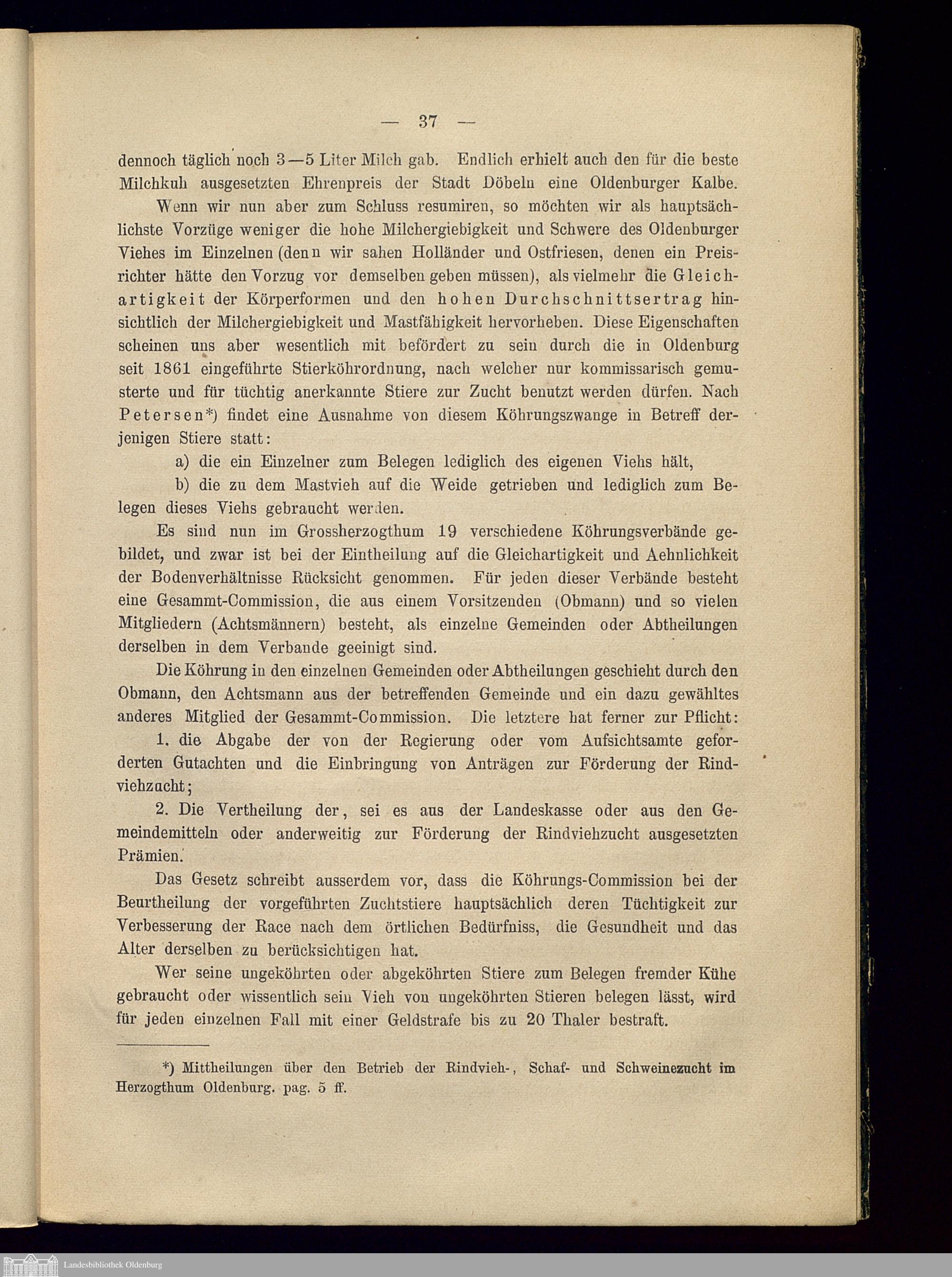 Die Pferde- und Rindviehzucht des Grossherzogthum Oldenburg in ihrer Bedeutung für die deutsche intensive Landwirthschaft / von Arnold Frege